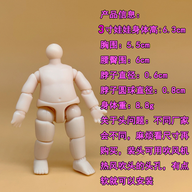 2.5inch 3inch bjd 바디 인형 교체용 의상 6.3cm 바디 가동형 인형 메이크업 변경 BJD 공주 액세서리 인형스토어 가기