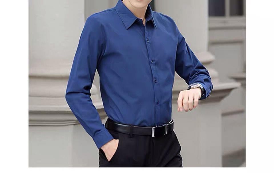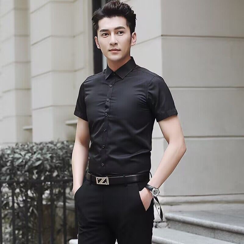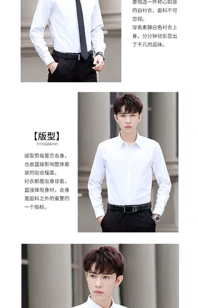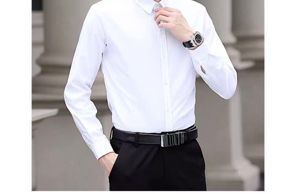 화이트 셔츠 남자 긴팔 슬림 핏 봄과 가을 한국 유행 남성 비즈니스 반팔 셔츠 올매치 솔리드 컬러 핸섬