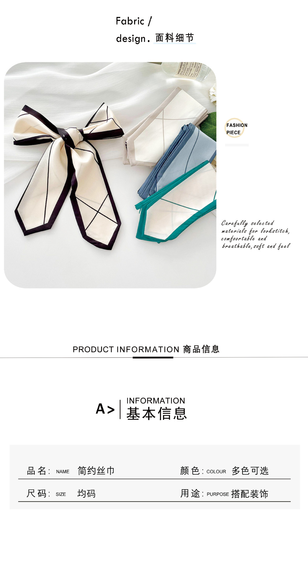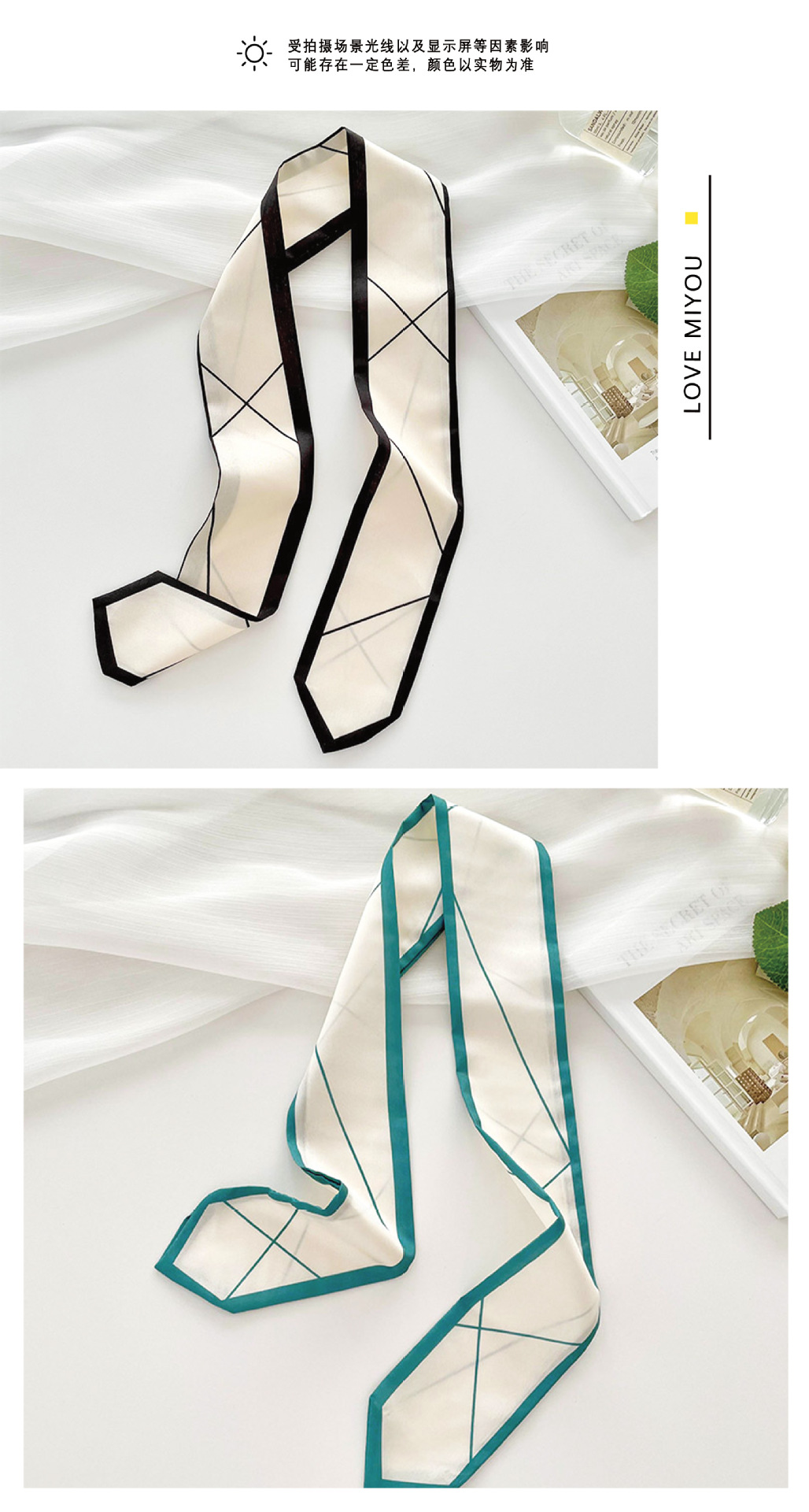 한국식 올매치 실크 스카프 좁은 긴 작은 실크 스카프 간단한 라인 타이 헤어 타이 백 동반 행사 장식 리본 스카프