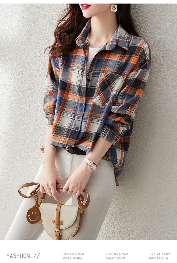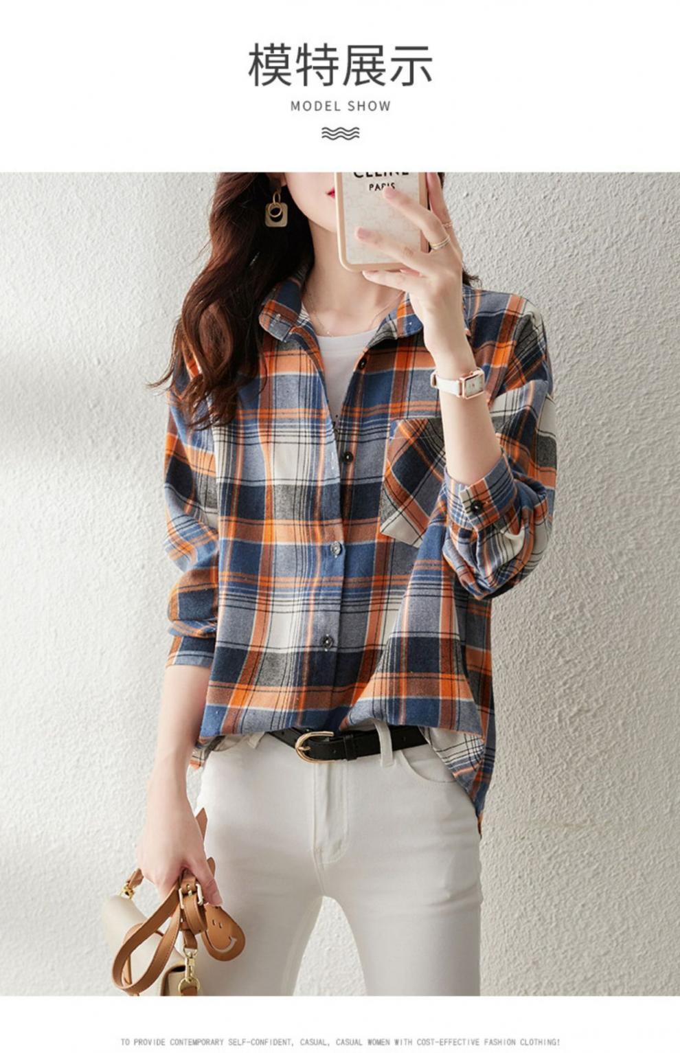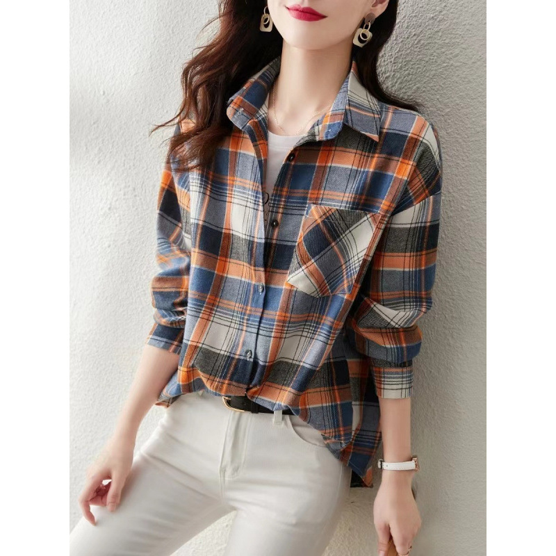 2024 년 초 가을 새로운 한국 스타일 긴 소매 무늬 여성 셔츠 패션 세련된 연령 감소 디자인 하이 엔드 센스 탑스토어 가기