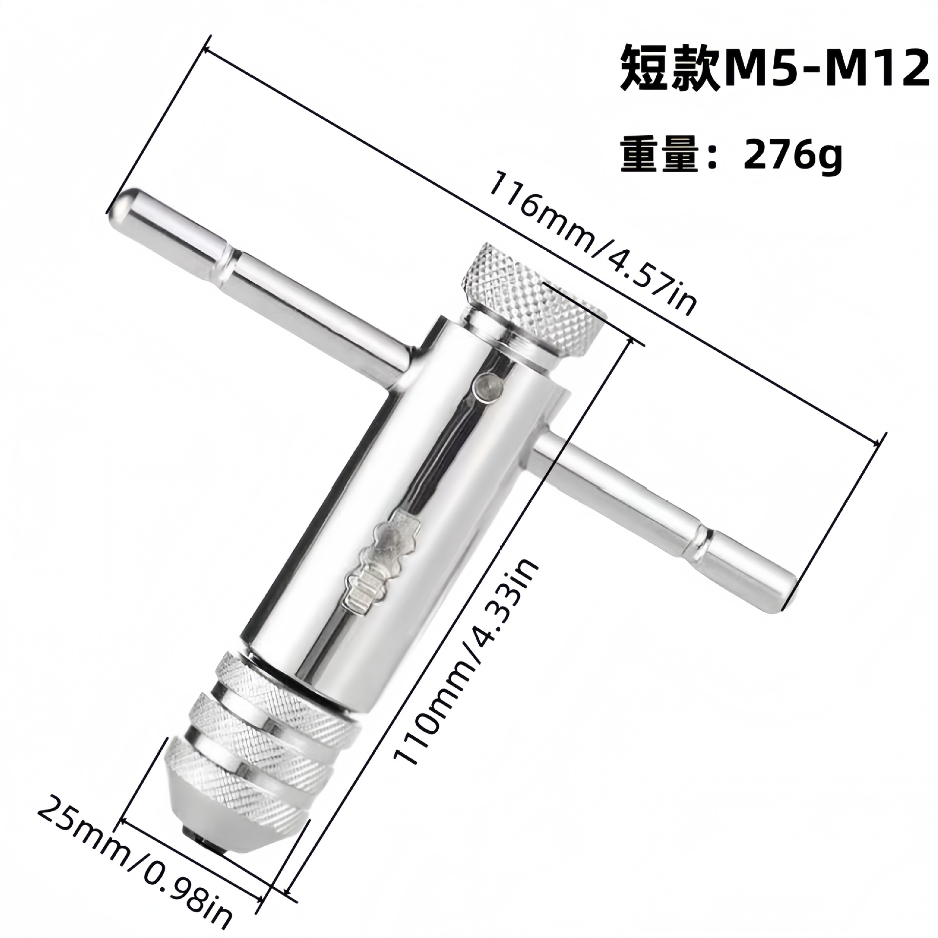 T型短款M5-M12可调节棘轮丝锥扳手: