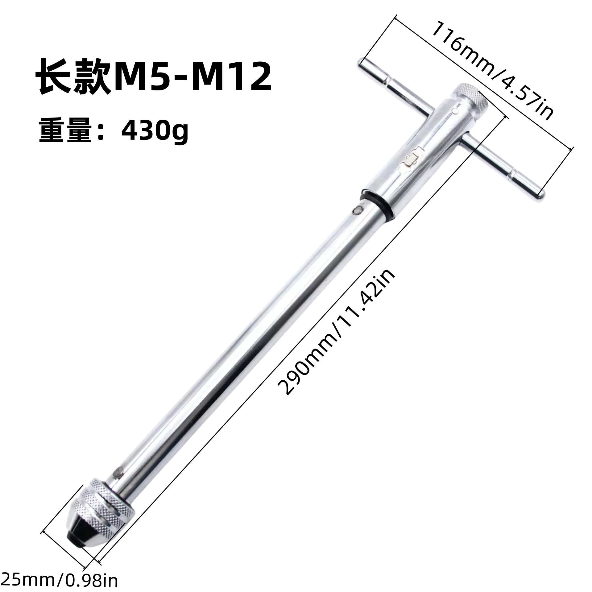 T型长款M5-M12可调节棘轮丝锥扳手: