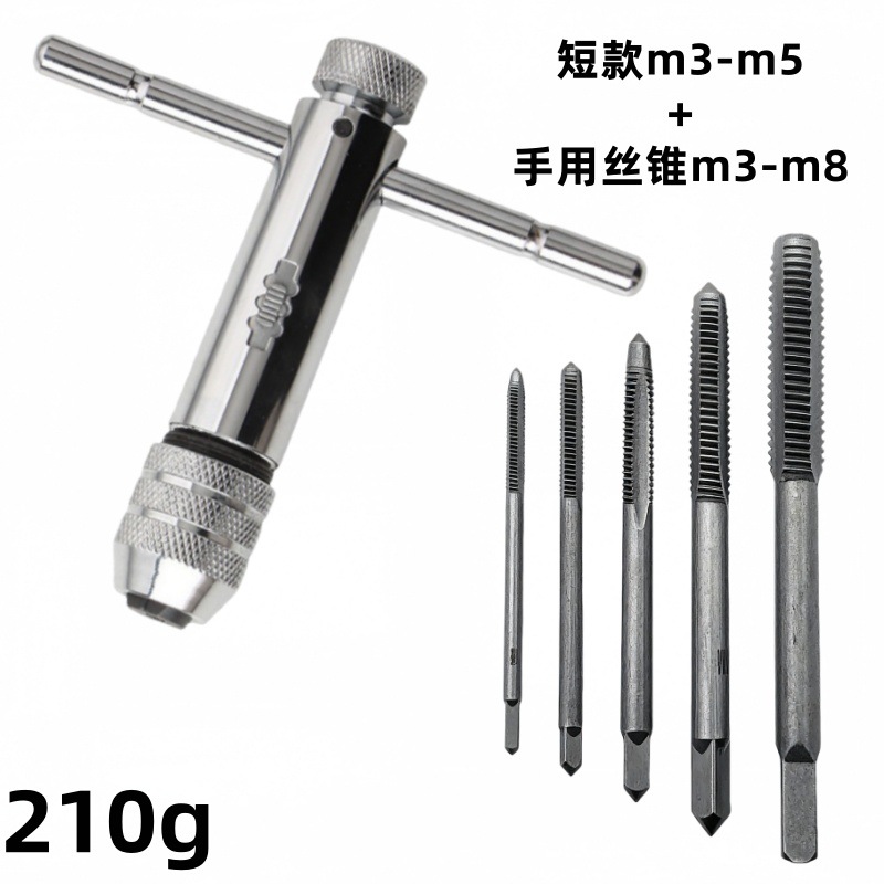 T型短款M3-M8可调节棘轮丝锥扳手+5pc手用丝锥M3-M8: