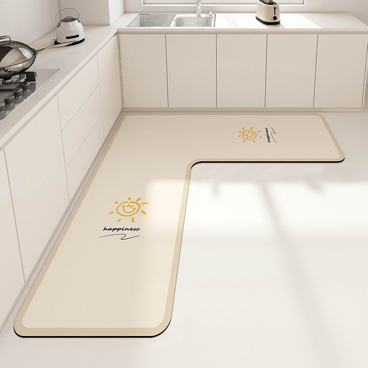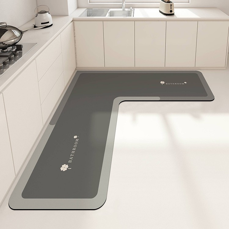 가벼운 럭셔리 L 자형 주방 바닥 매트 특수 물 흡수성 오일 흡수성 미끄럼 방지 매트 가정용 먼지 방지 쉬운 케어 소프트 디 아톰 진흙 바닥 매트