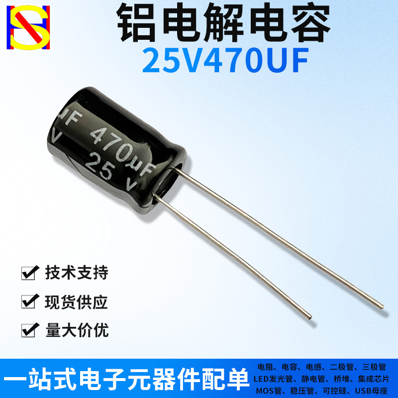 一站式电子元器件BOM配单25V470UF 8X12mm 直插件铝电解电容器/编排带/剪切短脚/定型高频