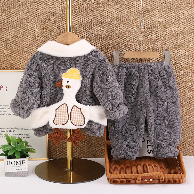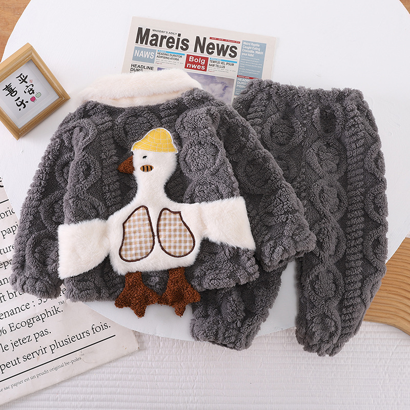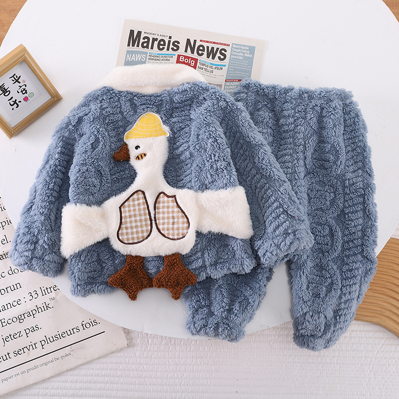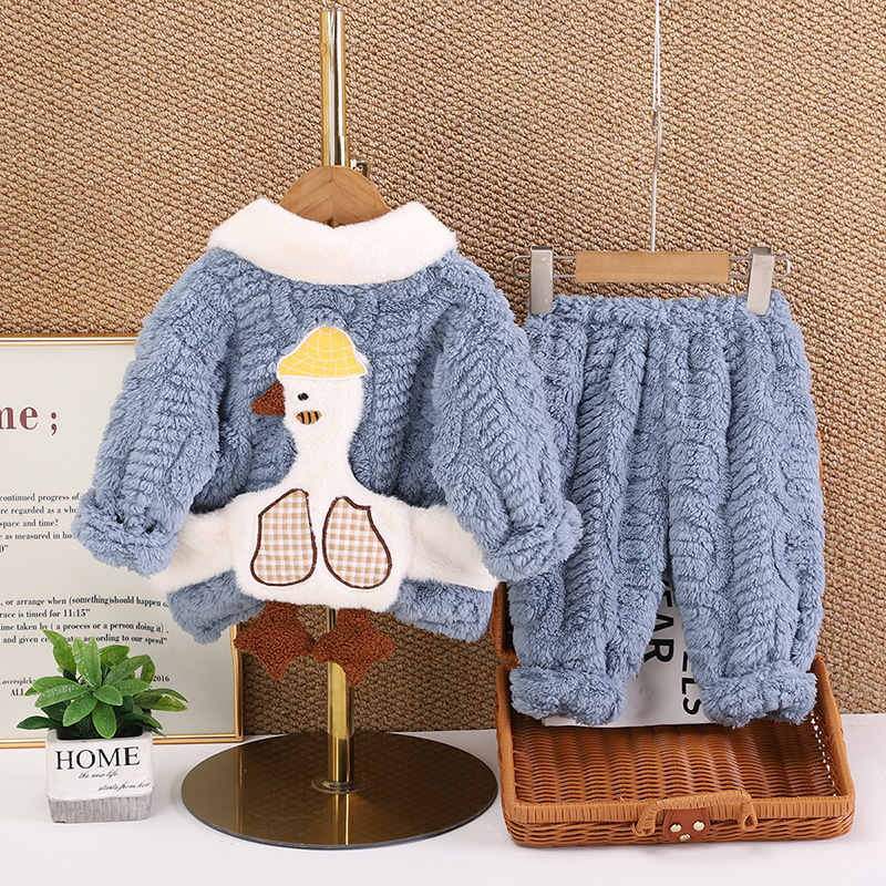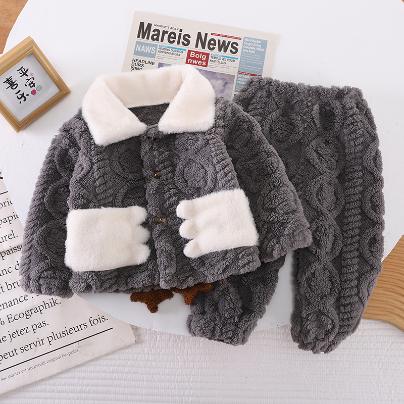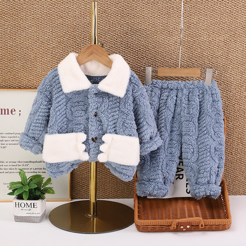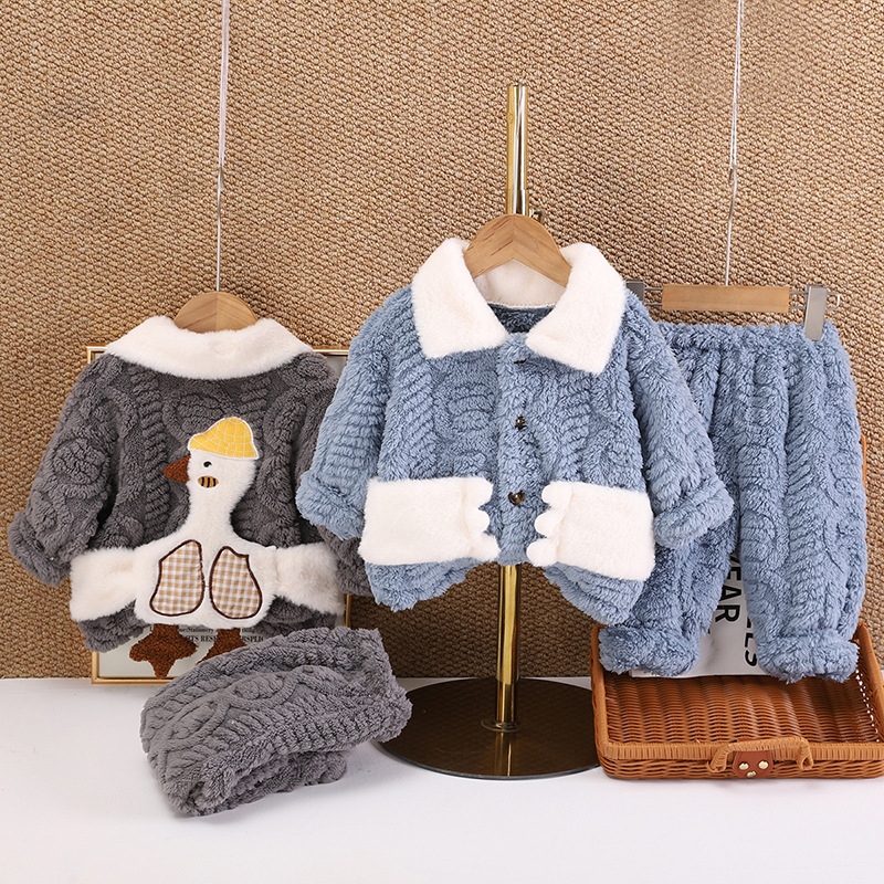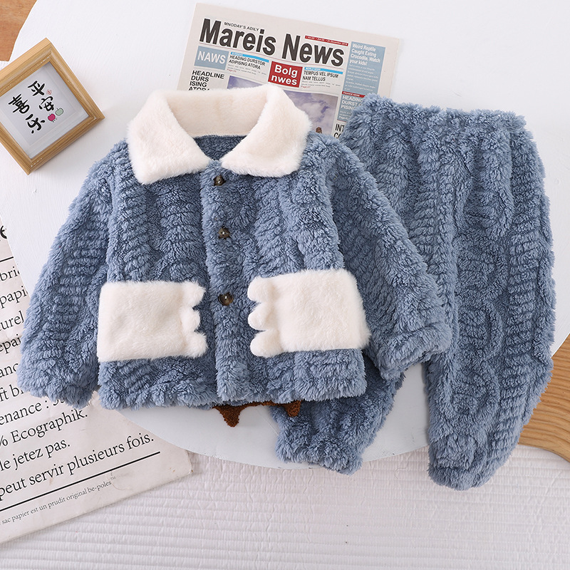 아동복 겨울 2024 년 새 소년 소녀 유아 아기 세트 잠옷 긴 소매 세트 투피스 세트 조수스토어 가기