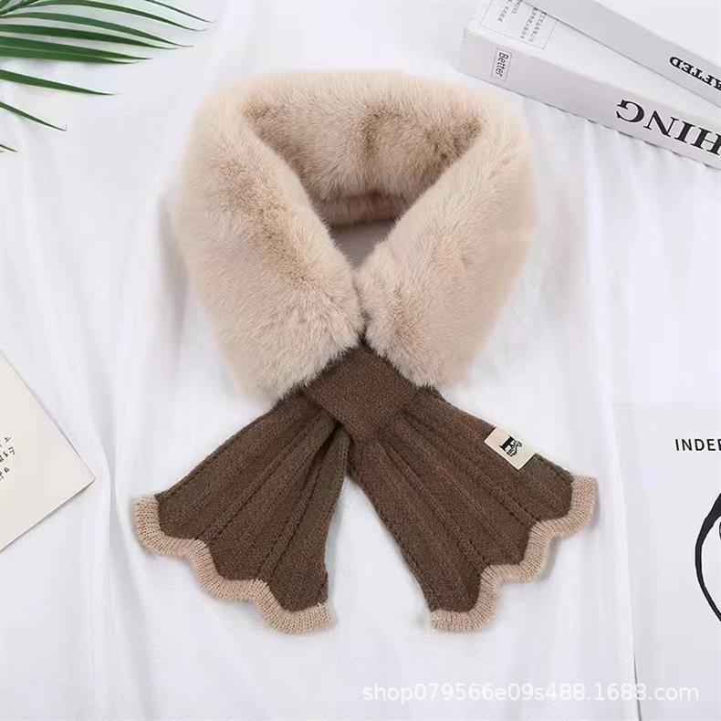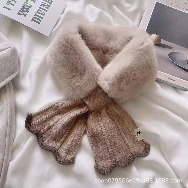 한국 버전의 니트 피쉬 테일 스카프 새로운 스티칭 마오 마오 스카프 렉스 토끼 모피 크로스 플러시 스카프 제조 업체스토어 가기