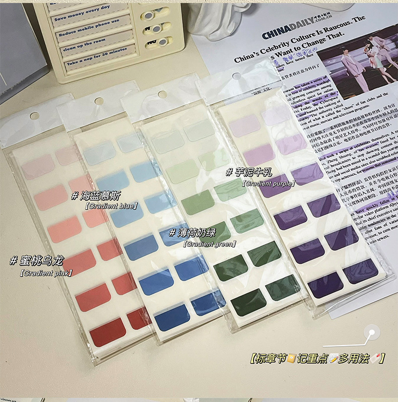 Ins 그라디언트 편리한 색인 스티커 스티커 스티커 학생들을위한 투명한 스티커 강한 마커