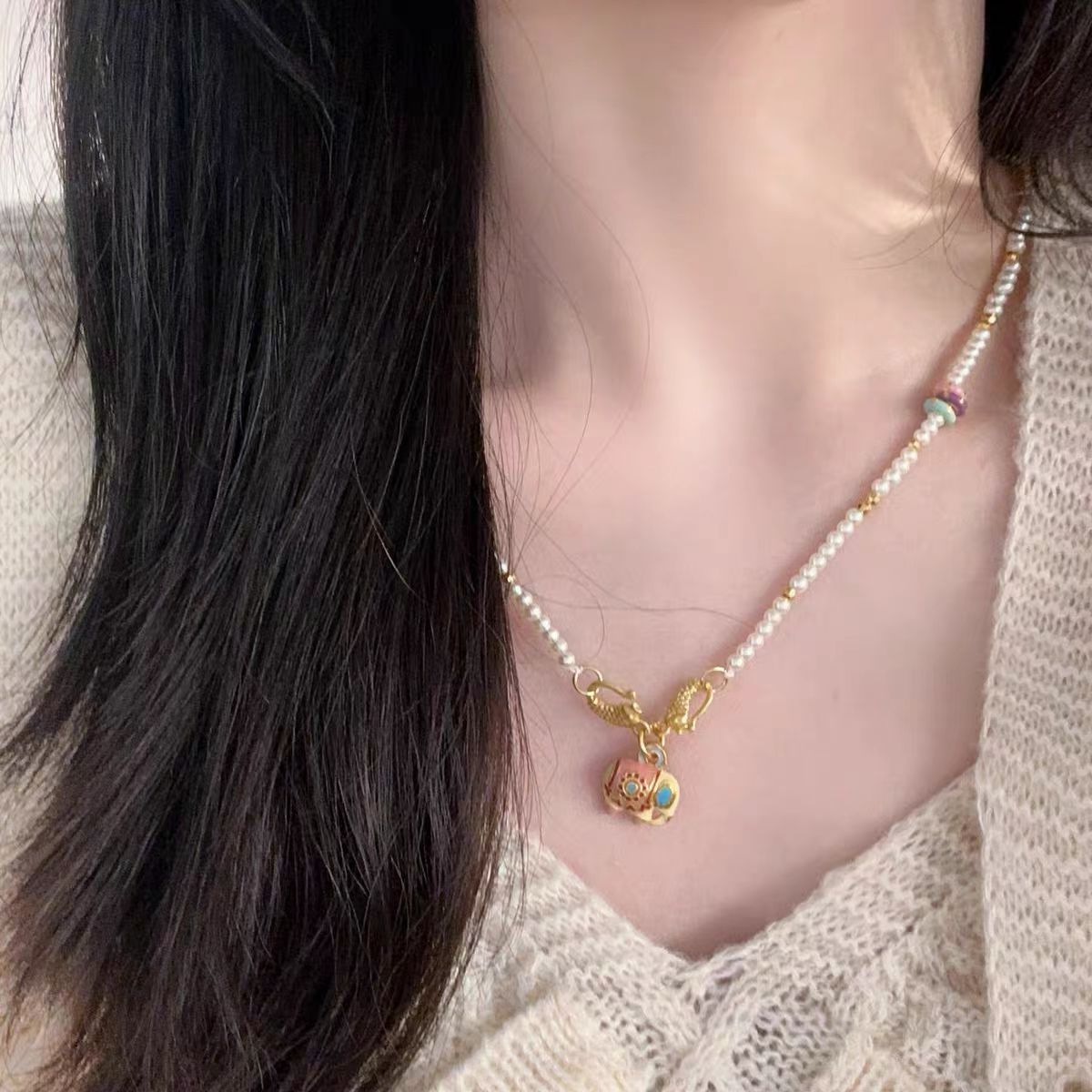 새로운 중국식 마일라드 모조 타이거 아이 구슬 목걸이 여성의 새로운 스타일 우아한 복고풍 맞춤형 기하학적 올매치 모직 체인
