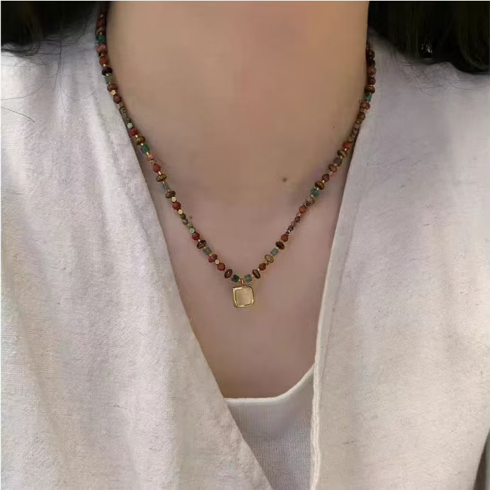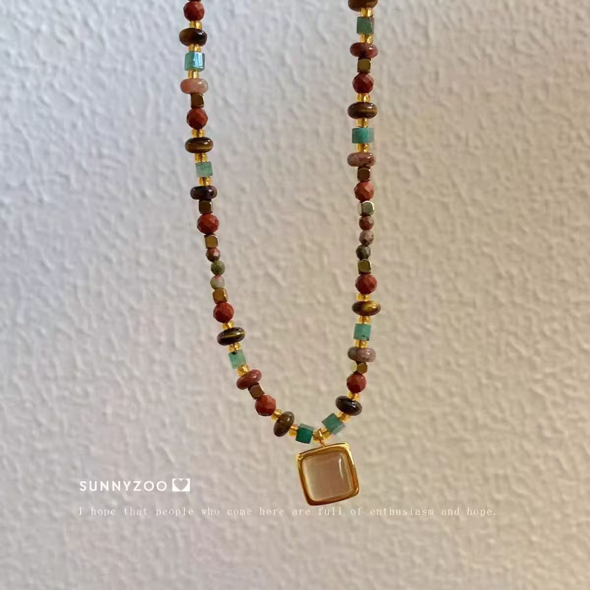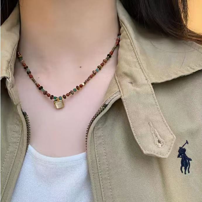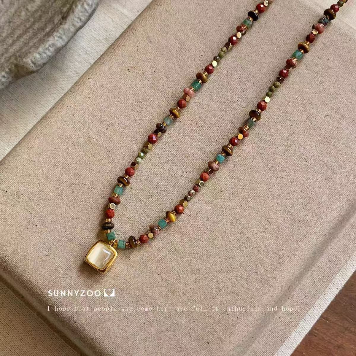 새로운 중국식 마일라드 모조 타이거 아이 구슬 목걸이 여성의 새로운 스타일 우아한 복고풍 맞춤형 기하학적 올매치 모직 체인스토어 가기