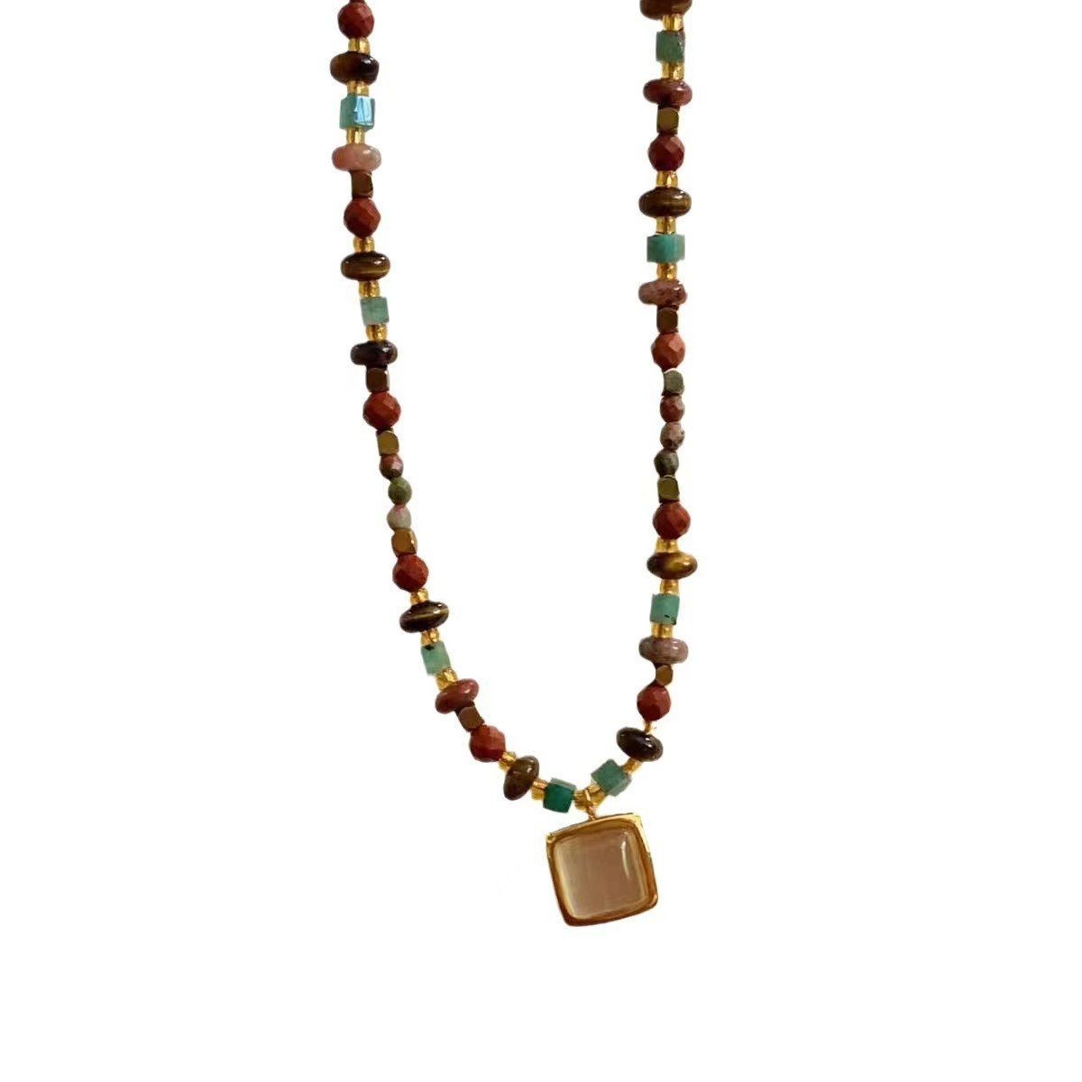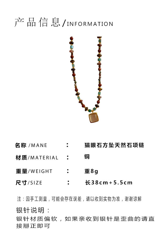 • 캣츠아이 사각 펜던트 천연석 목걸이 X4651