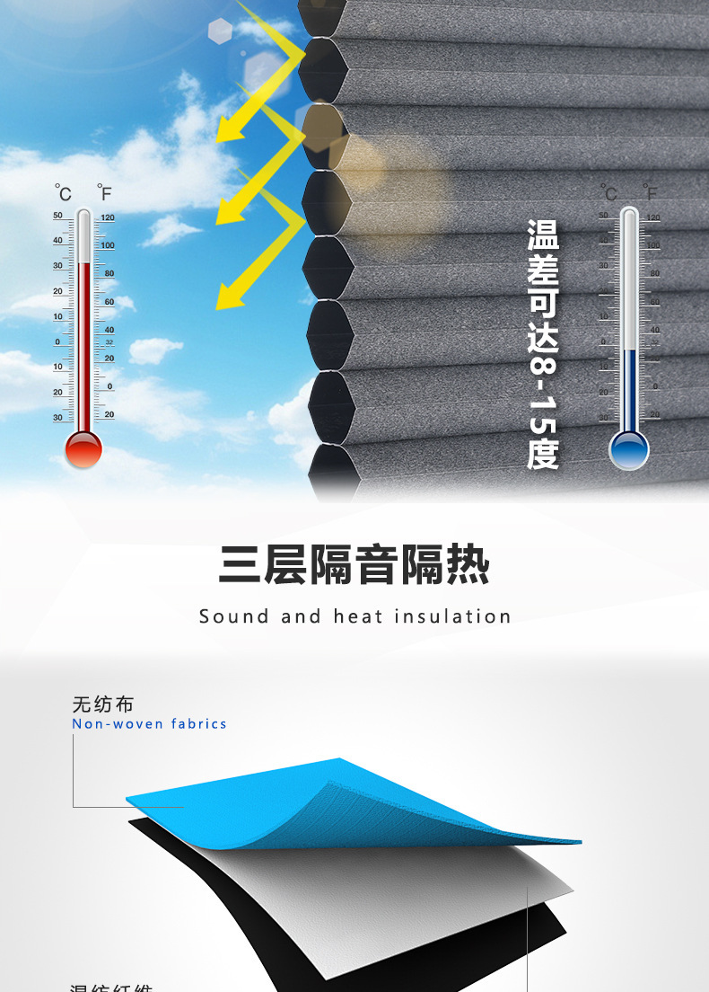 공장 도매 방수 벌집 커튼 직물 차등 열 절연 슬라이딩 도어 채광창 주방 전체 음영 알루미늄 호일 환경 보호 커튼