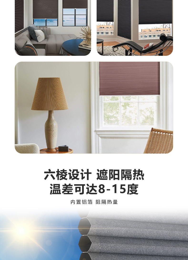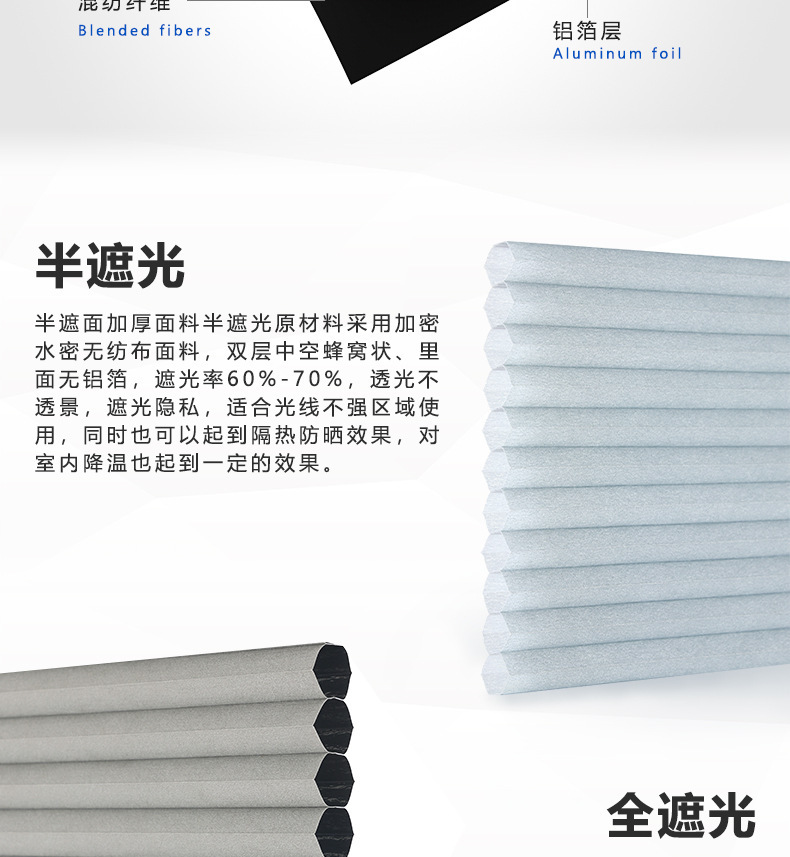 공장 도매 방수 벌집 커튼 직물 차등 열 절연 슬라이딩 도어 채광창 주방 전체 음영 알루미늄 호일 환경 보호 커튼스토어 가기