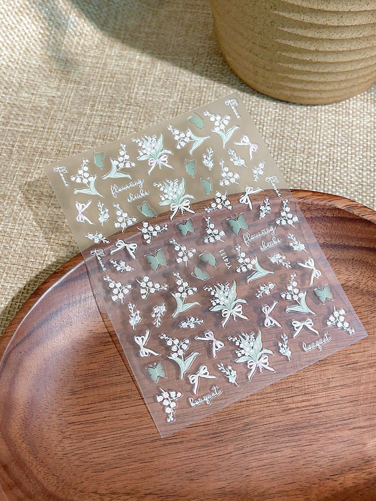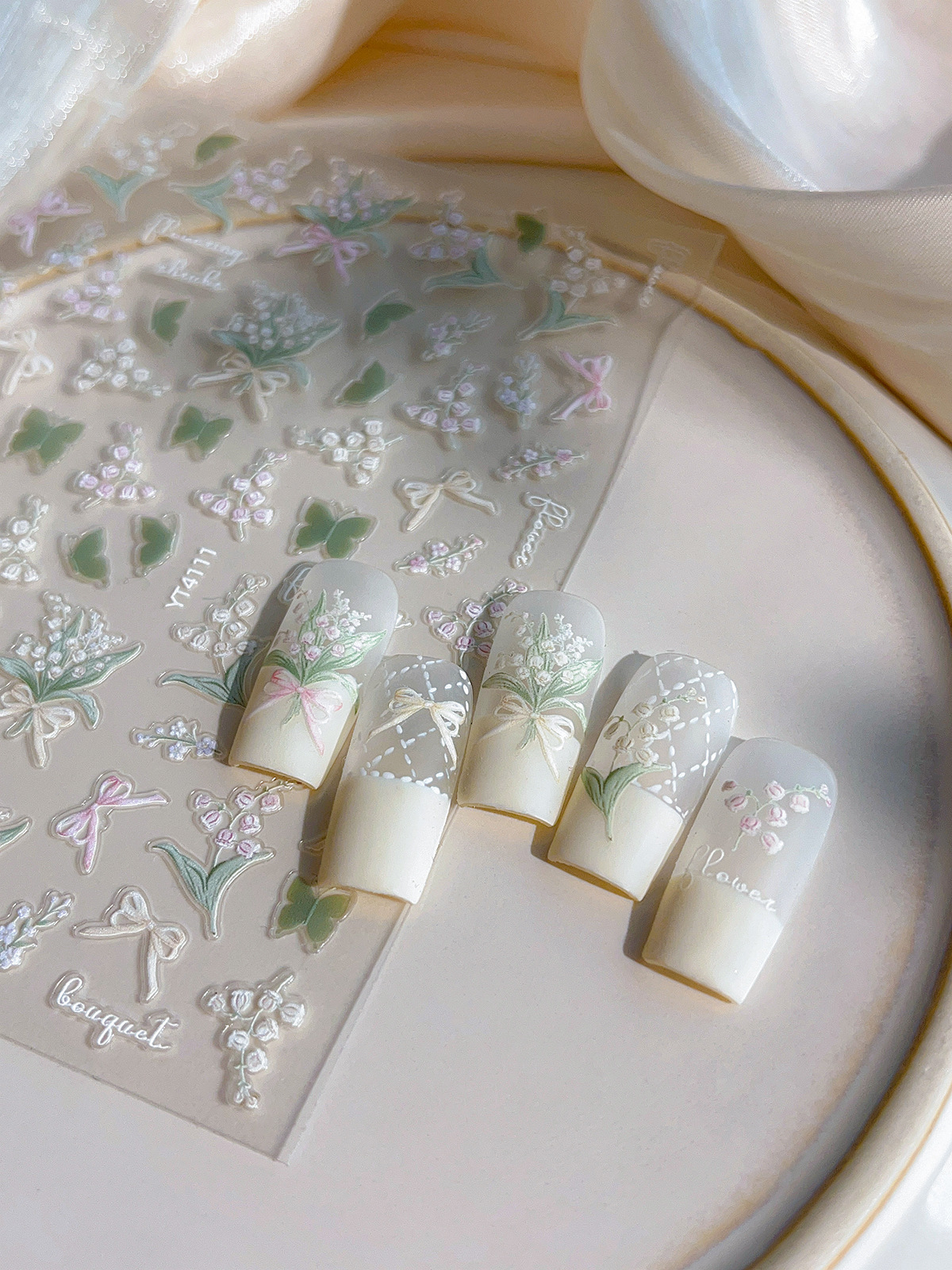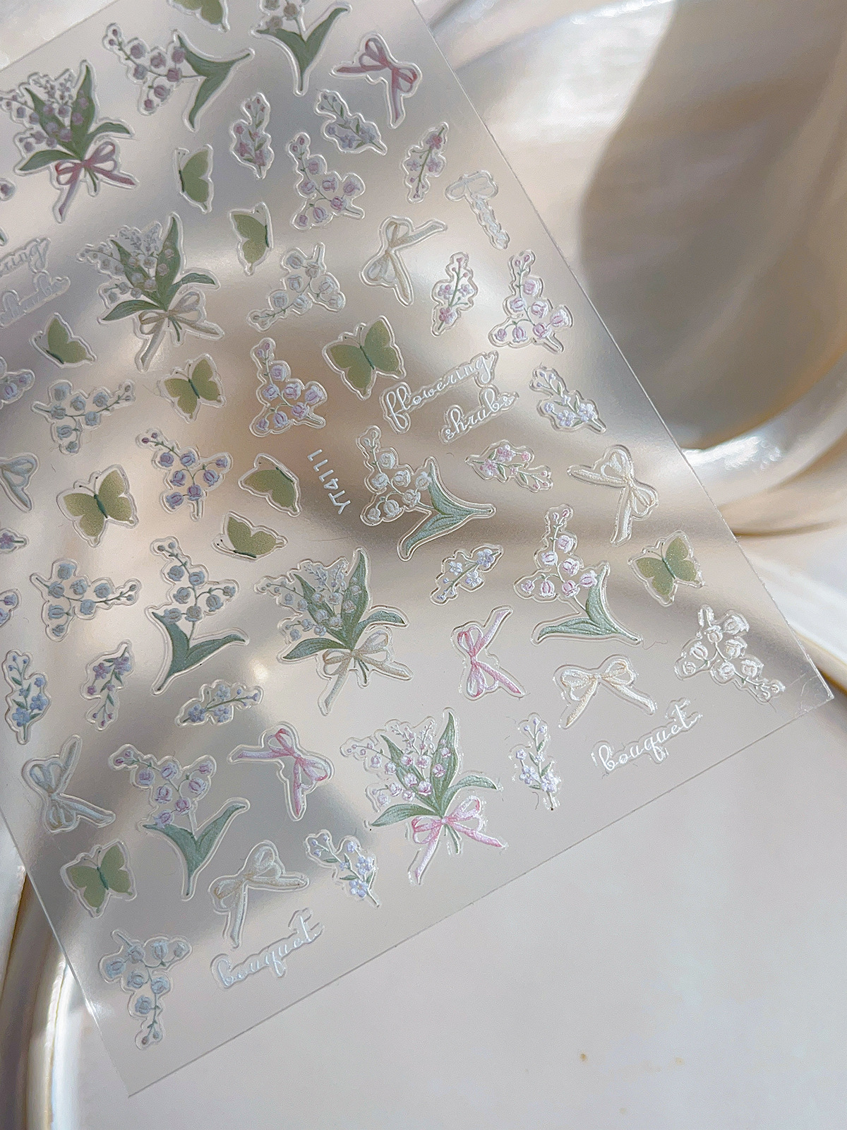 그물 붉은 백합 계곡 활 네일 아트 스티커 작은 신선한 색 꽃 구호 접착제 네일 장식 도매
