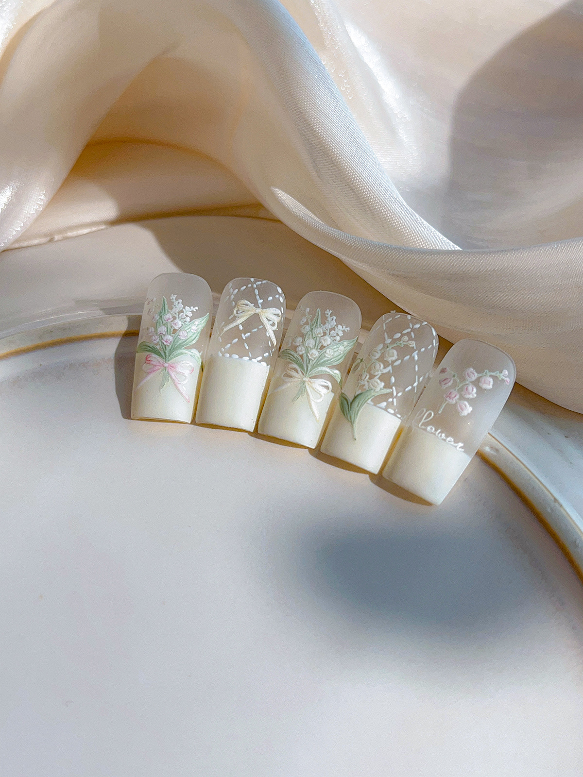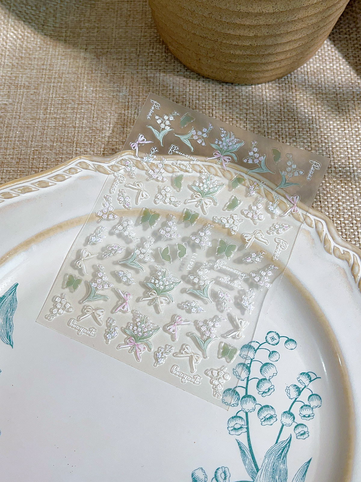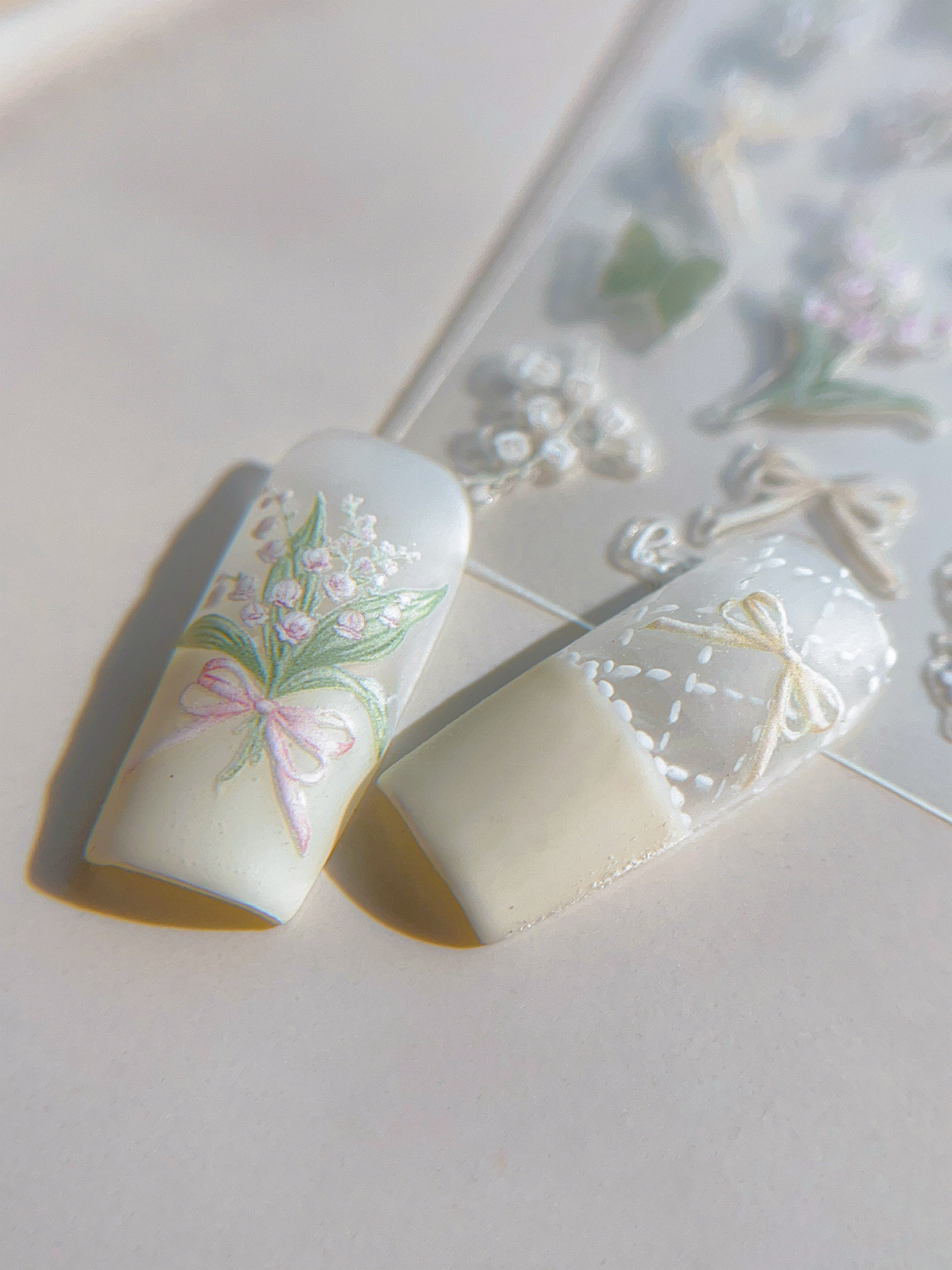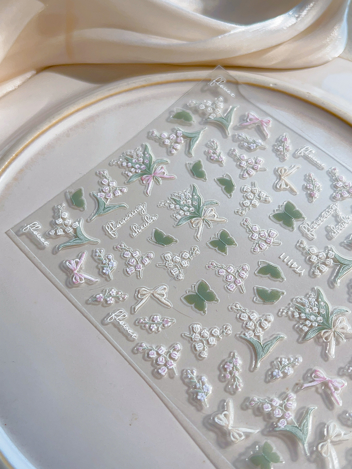 그물 붉은 백합 계곡 활 네일 아트 스티커 작은 신선한 색 꽃 구호 접착제 네일 장식 도매