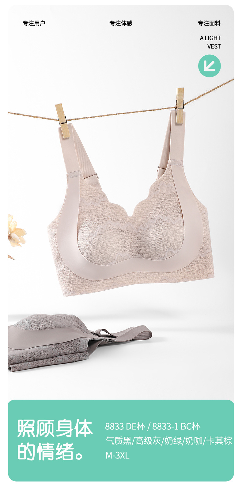 흔적 없는 속옷, 여성스러운 레이스, 푸쉬업 및 리프팅, 보조가슴 수축, 얇은 소재, 큰 가슴을 작아보이게 하는, 처짐 방지 스포츠 브라