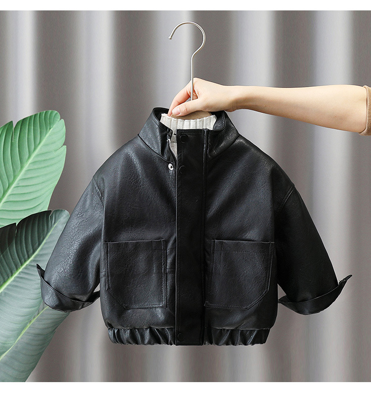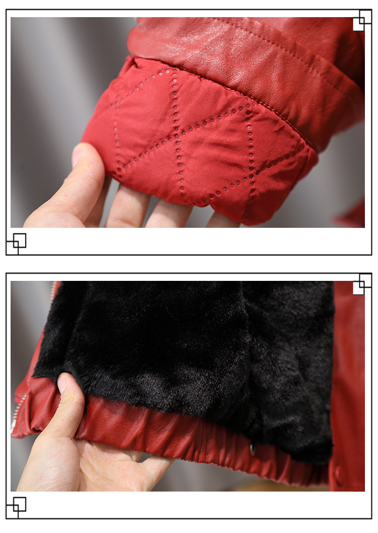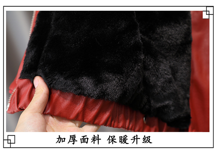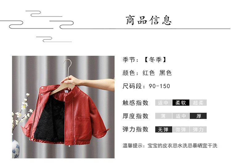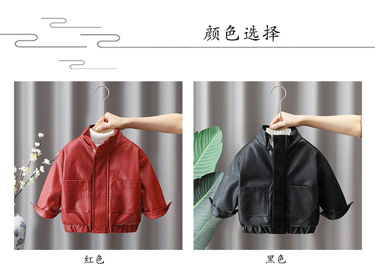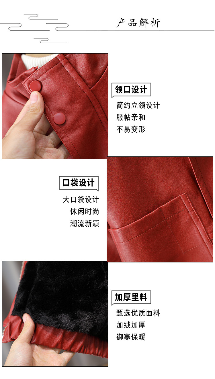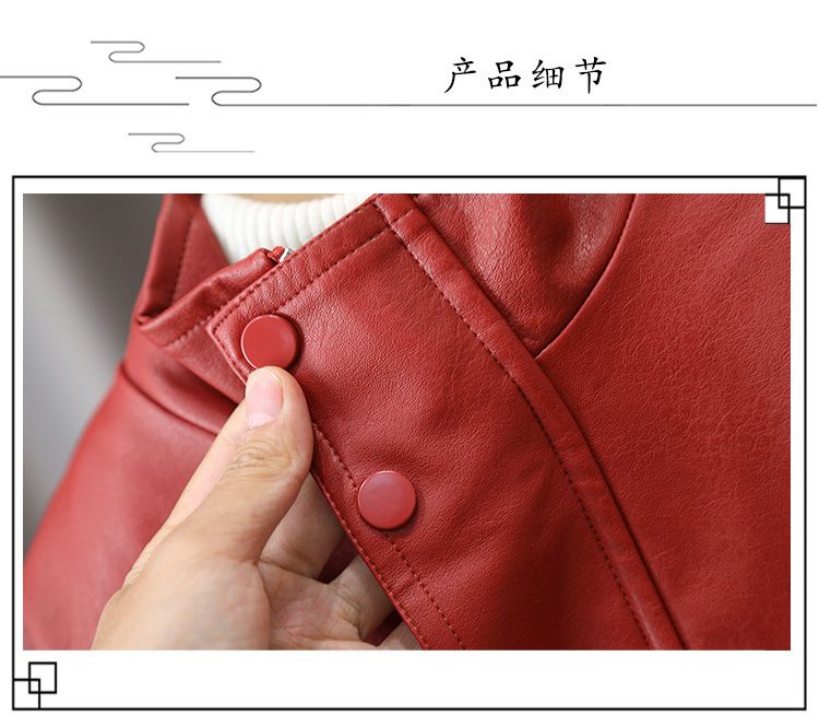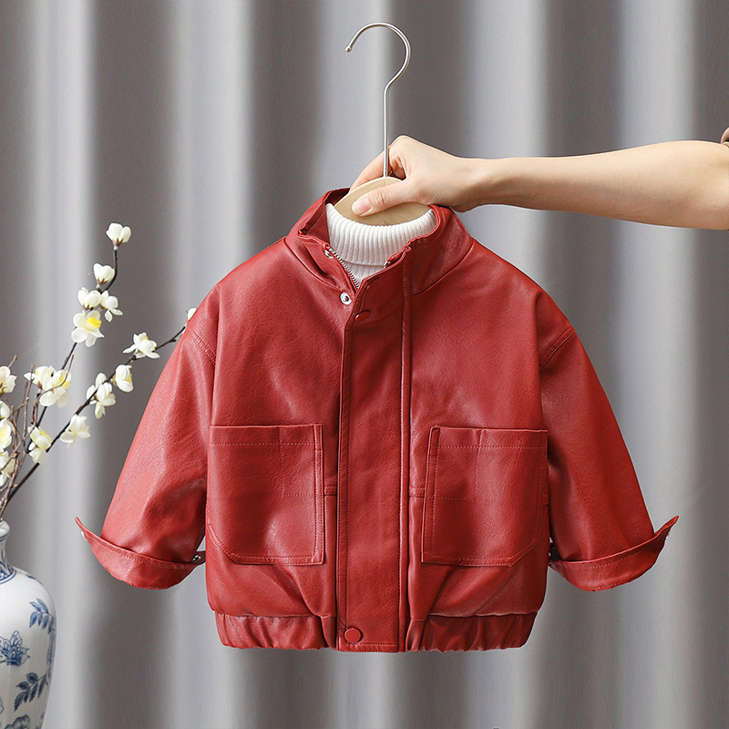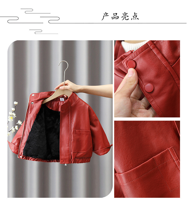 6675 소년 빨간 가죽 자켓 2025 어린이 벨벳 두꺼운 새해 옷 아기 겨울 축제 스탠드 칼라 가죽 자켓스토어 가기