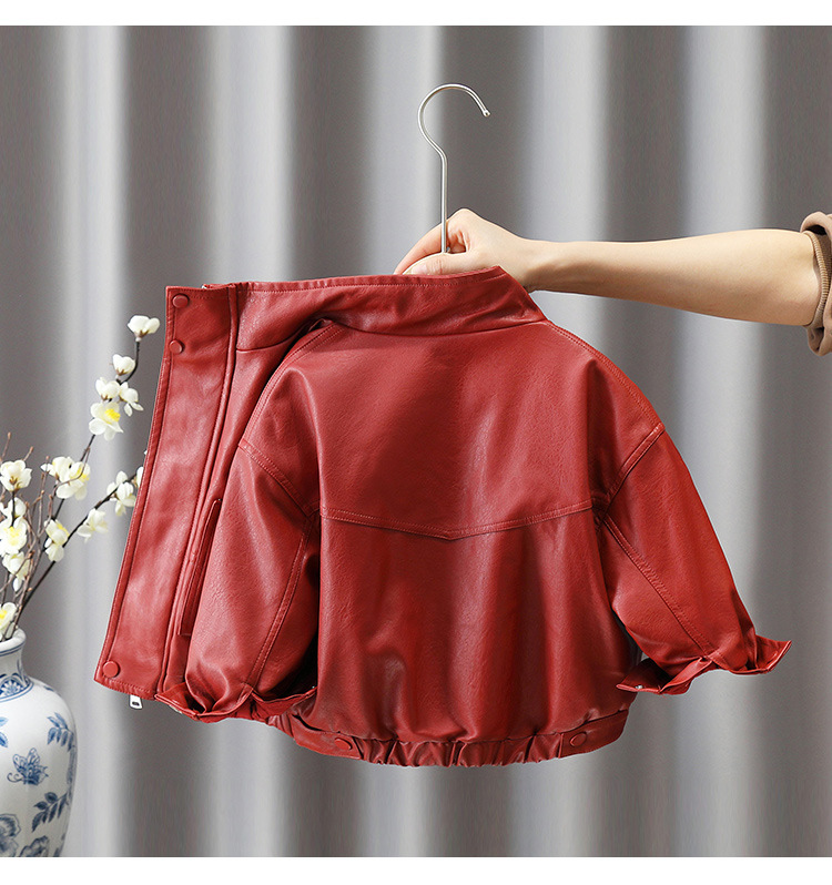 6675 소년 빨간 가죽 자켓 2025 어린이 벨벳 두꺼운 새해 옷 아기 겨울 축제 스탠드 칼라 가죽 자켓