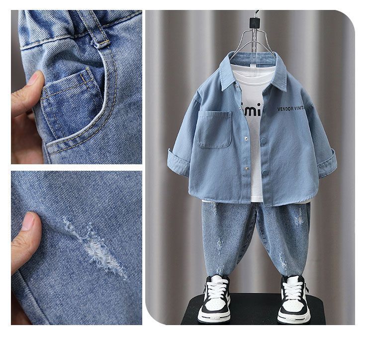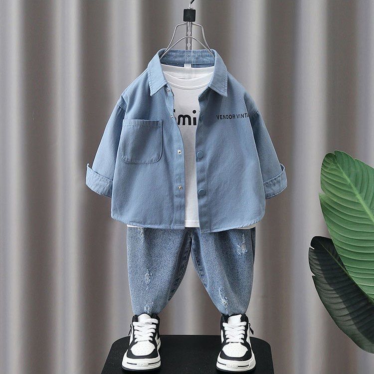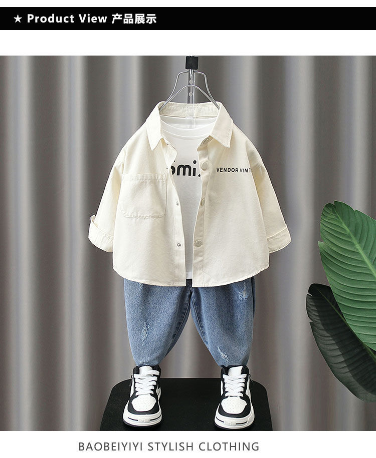 소년의 봄과 가을 세트 어린이 긴팔 셔츠 2023 봄과 가을 새로운 유행 아기 잘 생긴 투피스 세트스토어 가기