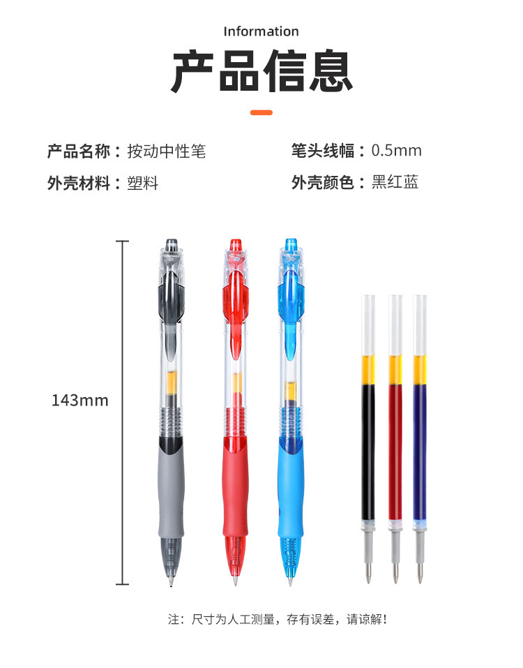 GP1008 프레스 젤 펜 빠른 건조 대용량 0.5 블랙 학생 볼펜 회의 사무실 서명 펜