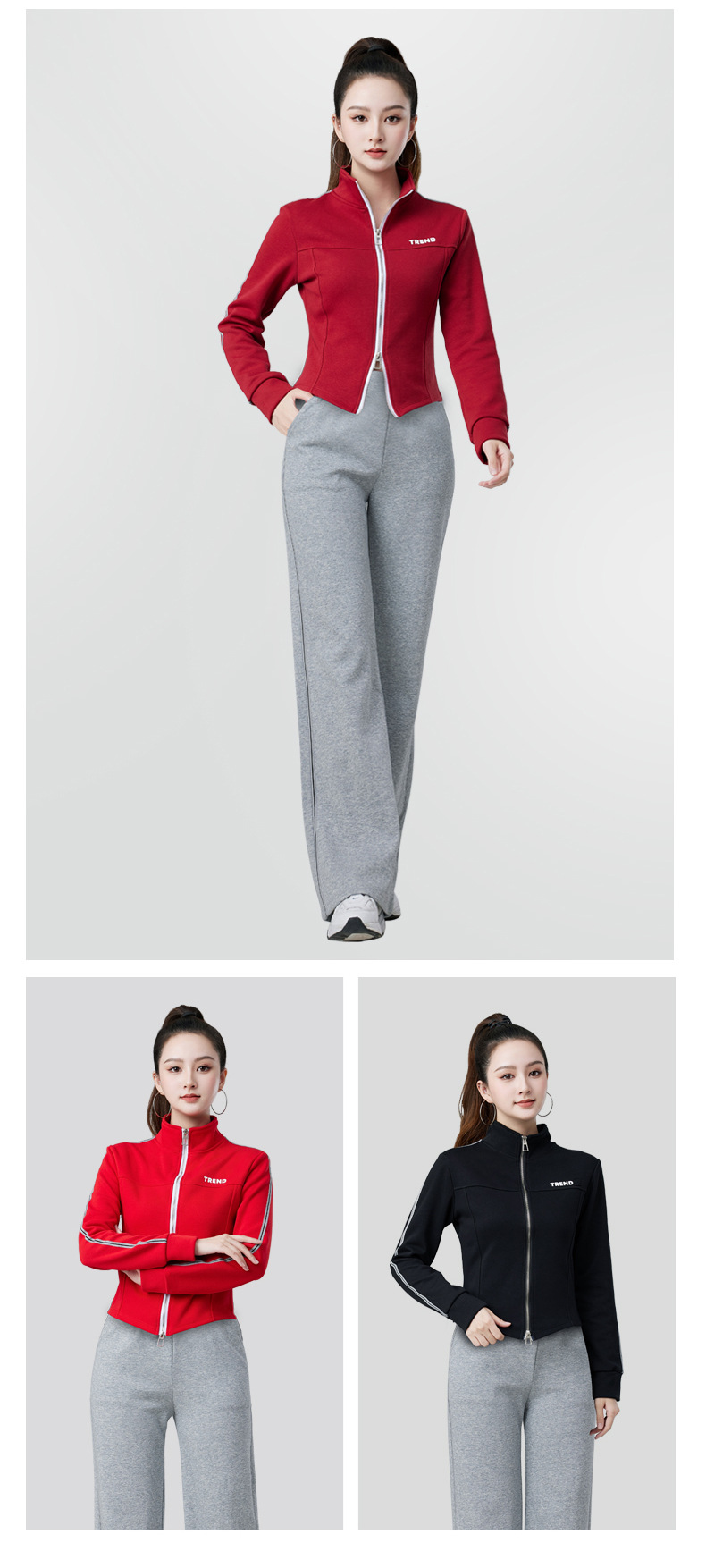 • 그레이 재킷 + 버건디 팬츠