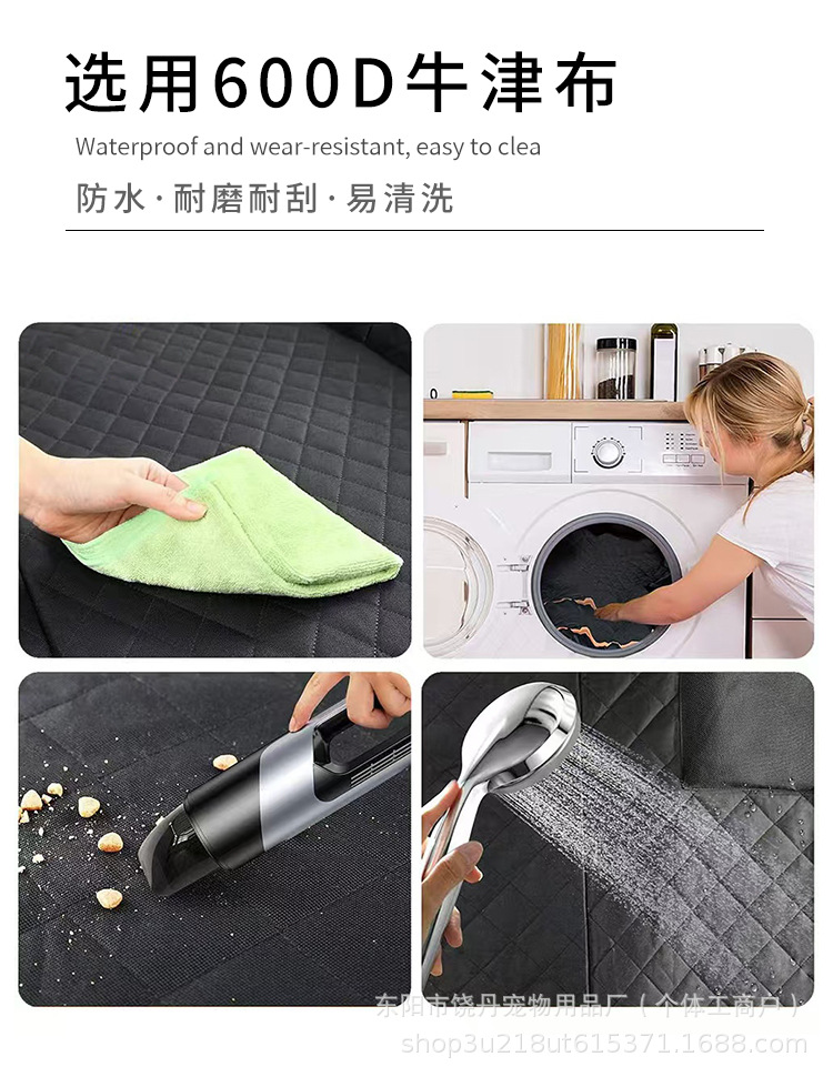 2、优质材料:宠物狗狗座椅套的表面由坚固的600D牛津布制成,耐刮擦和撕裂。 4层高级面料,防水且不透水,完全保护您的座椅免受污垢、液体、划痕、毛发的侵害;