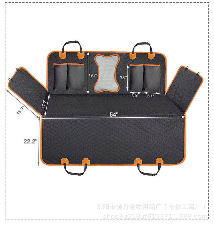 4、独特设计:这款狗狗座椅套的中心带有网眼视窗,帮助您的宠物获得更好的空气流通,让您轻松看到它们,减少它们的焦虑。狗狗后座汽车罩上的超大尺寸狗狗配件口袋可以存放宠物用品、食物和玩具等;