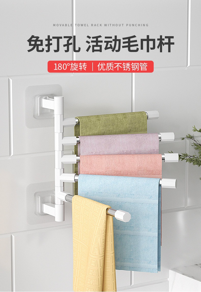 욕실 구멍이없는 회전 타월 랙 벽걸이 이동식 로드 타월 바 욕실 걸이 랙 저장 랙 걸이 봉 공기스토어 가기