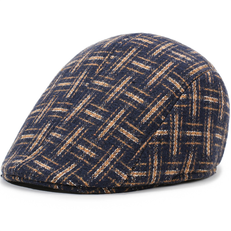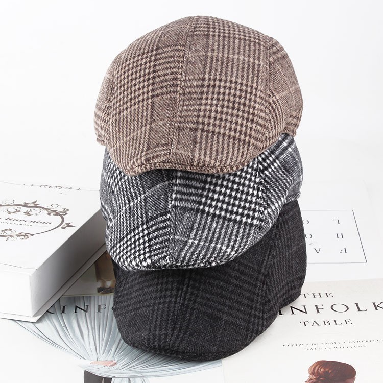 가을과 겨울 피크 캡 대형 격자 무늬 베레모 디렉터 캡 중년 및 노인 남성 모자 할아버지 모자 겨울 모자