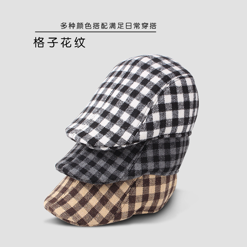 가을과 겨울 피크 캡 대형 격자 무늬 베레모 디렉터 캡 중년 및 노인 남성 모자 할아버지 모자 겨울 모자스토어 가기