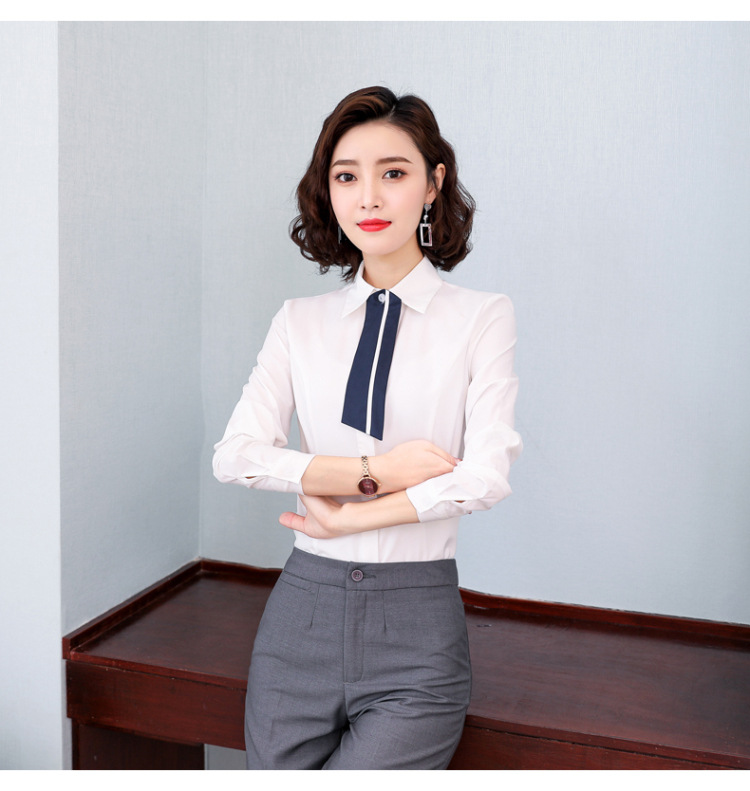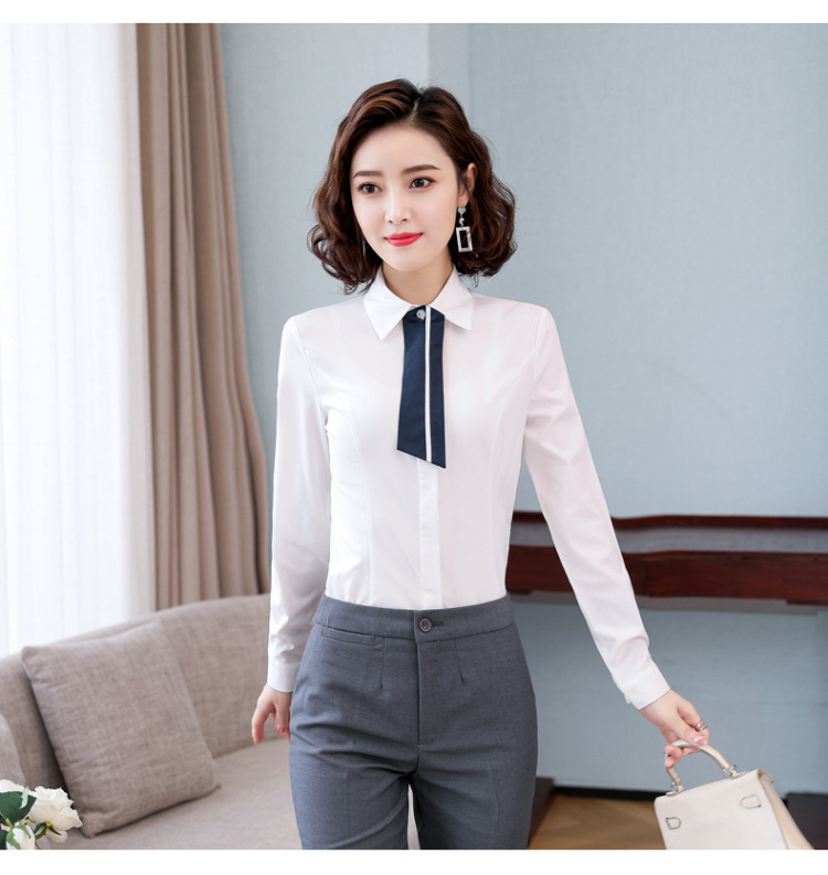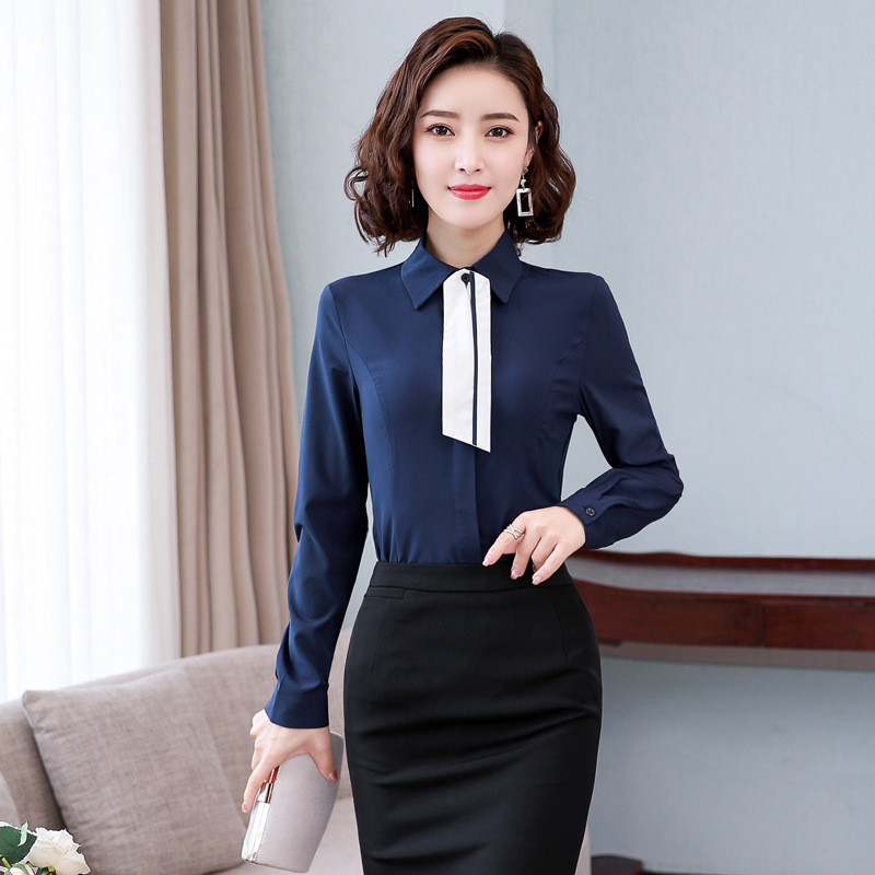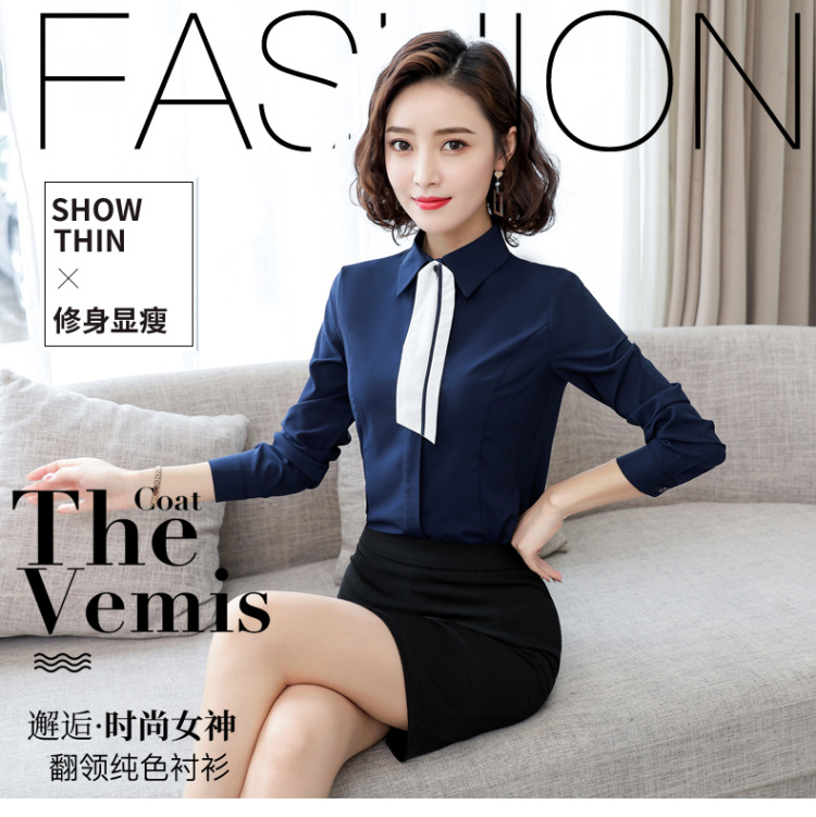 티베트 블루 셔츠 여성용 긴팔 새 스타일 우아한 전문 원피스 한국 스타일 슬림 핏 쉬폰 화이트 셔츠 작업복스토어 가기