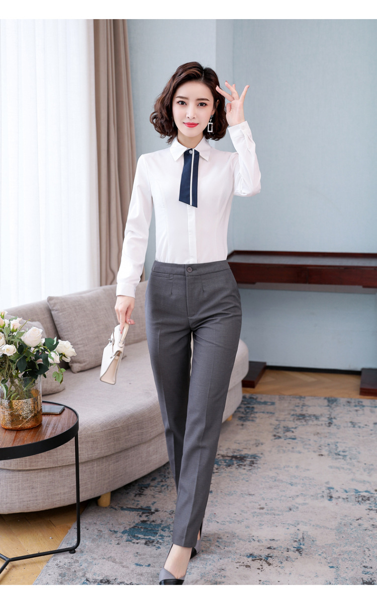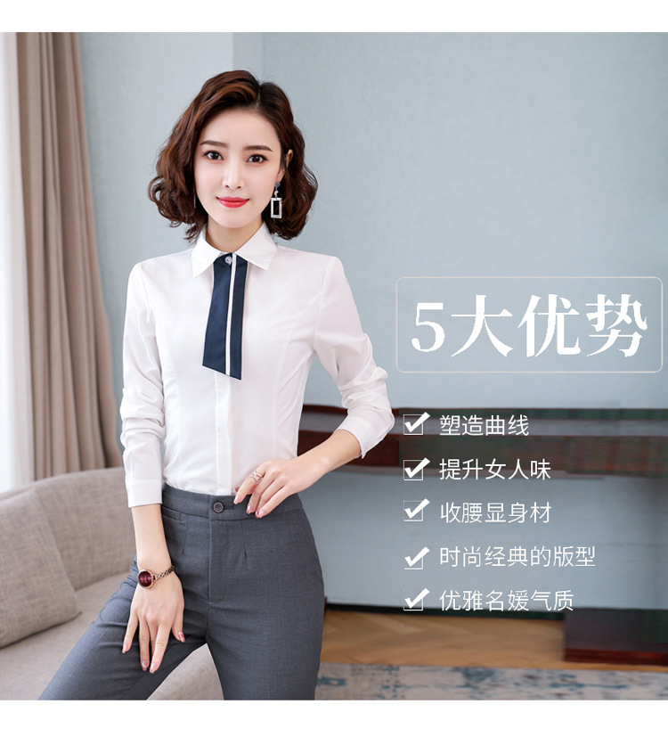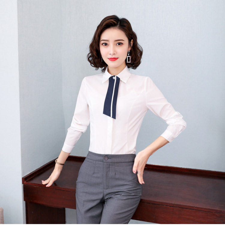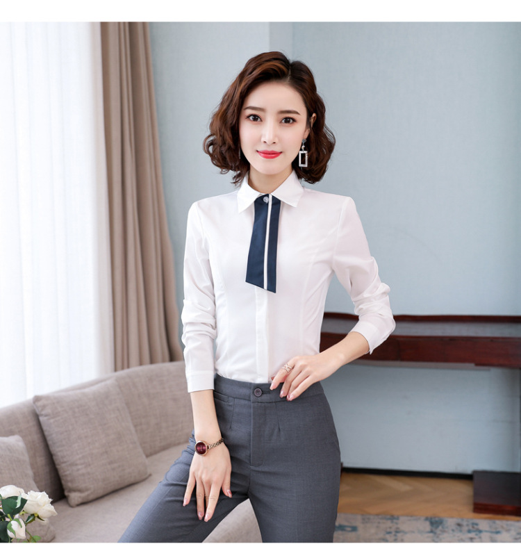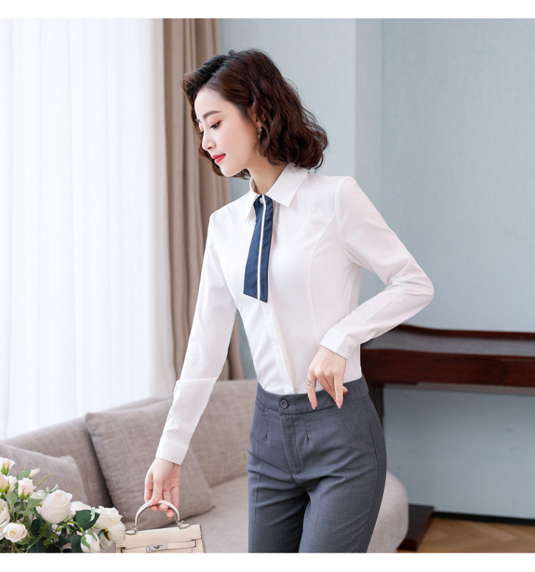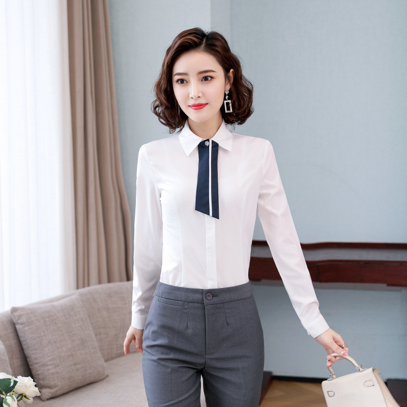티베트 블루 셔츠 여성용 긴팔 새 스타일 우아한 전문 원피스 한국 스타일 슬림 핏 쉬폰 화이트 셔츠 작업복