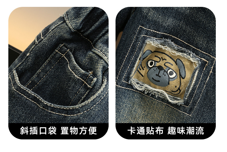 소년 '한국식 청바지 봄 · 가을 새 도착 어린이 서양식 바지 아기의 찢어진 바지스토어 가기