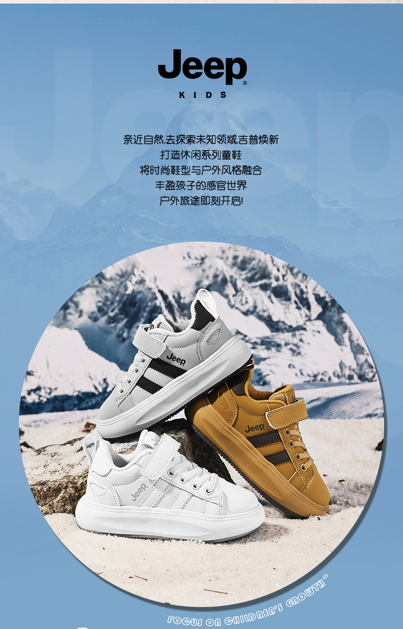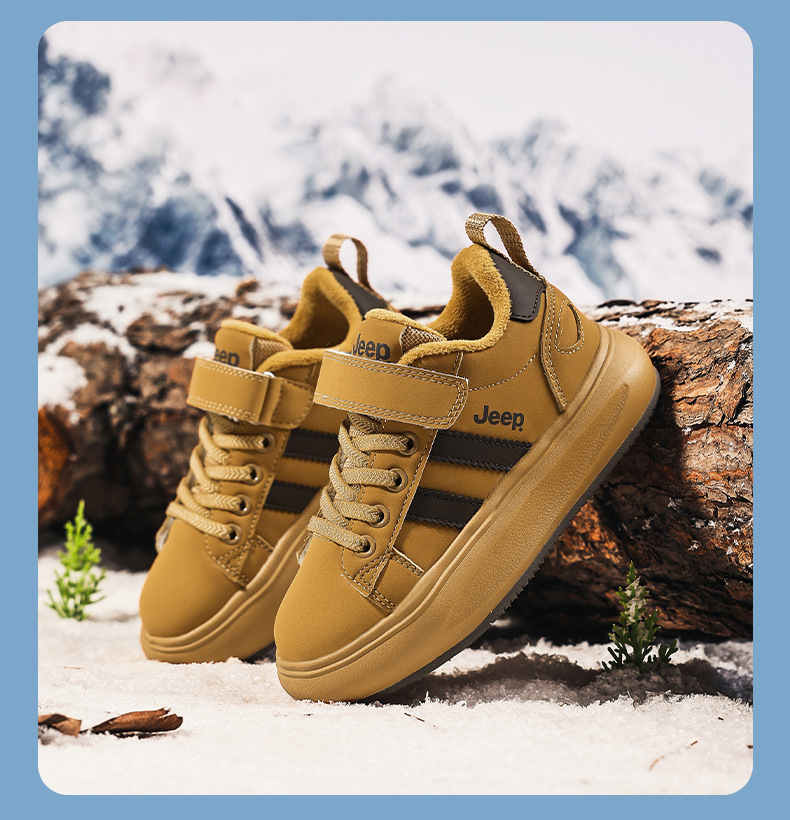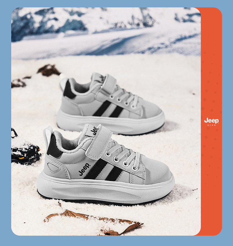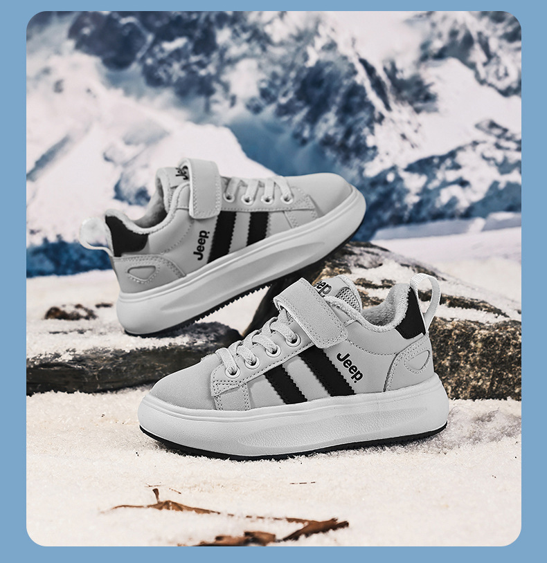 정품 지프 아동화, 보온 기능이 있는 학생용 흰색 운동화, 2025년 신형 가죽 방수 부드러운 밑창 아동 운동화스토어 가기