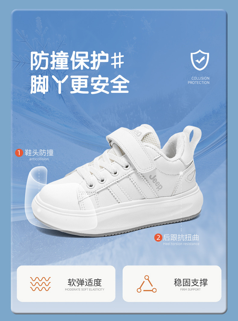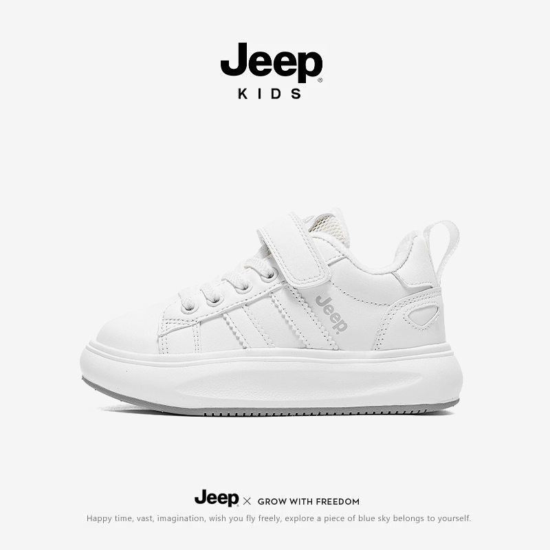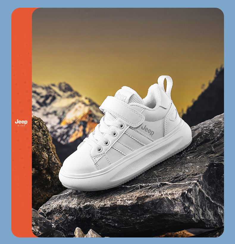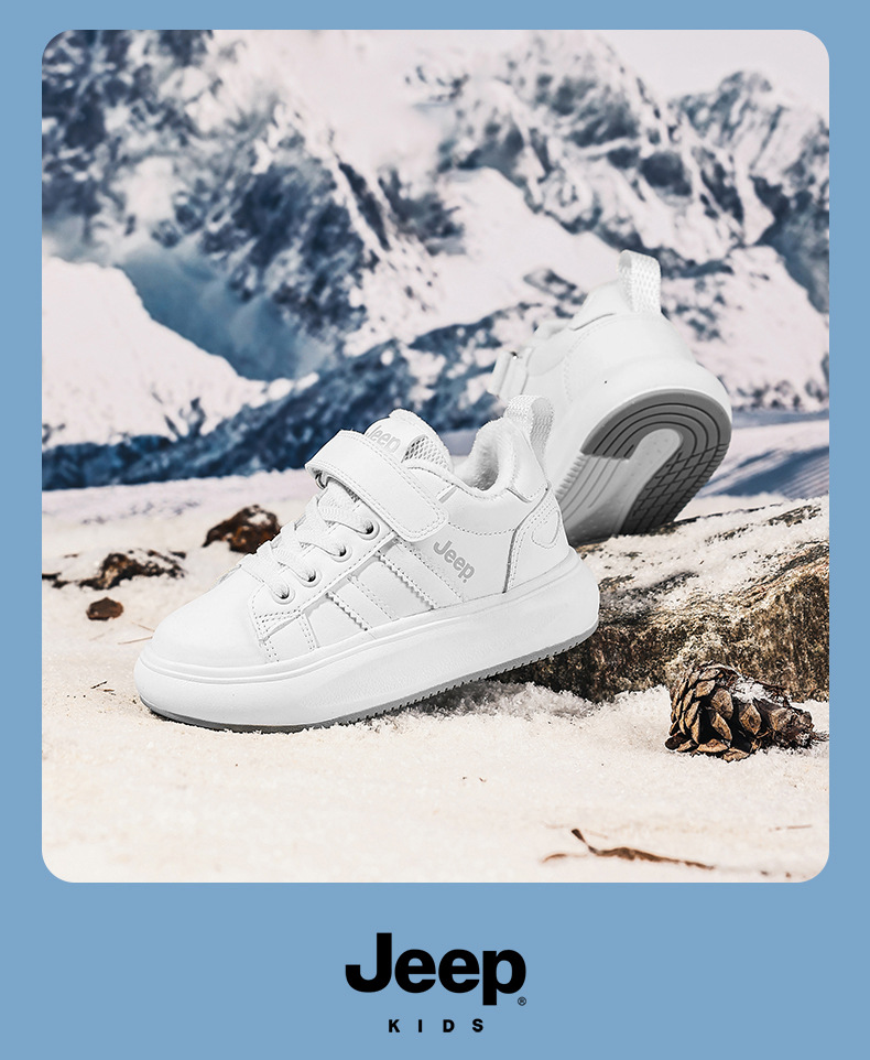 정품 지프 아동화, 보온 기능이 있는 학생용 흰색 운동화, 2025년 신형 가죽 방수 부드러운 밑창 아동 운동화