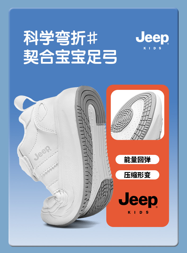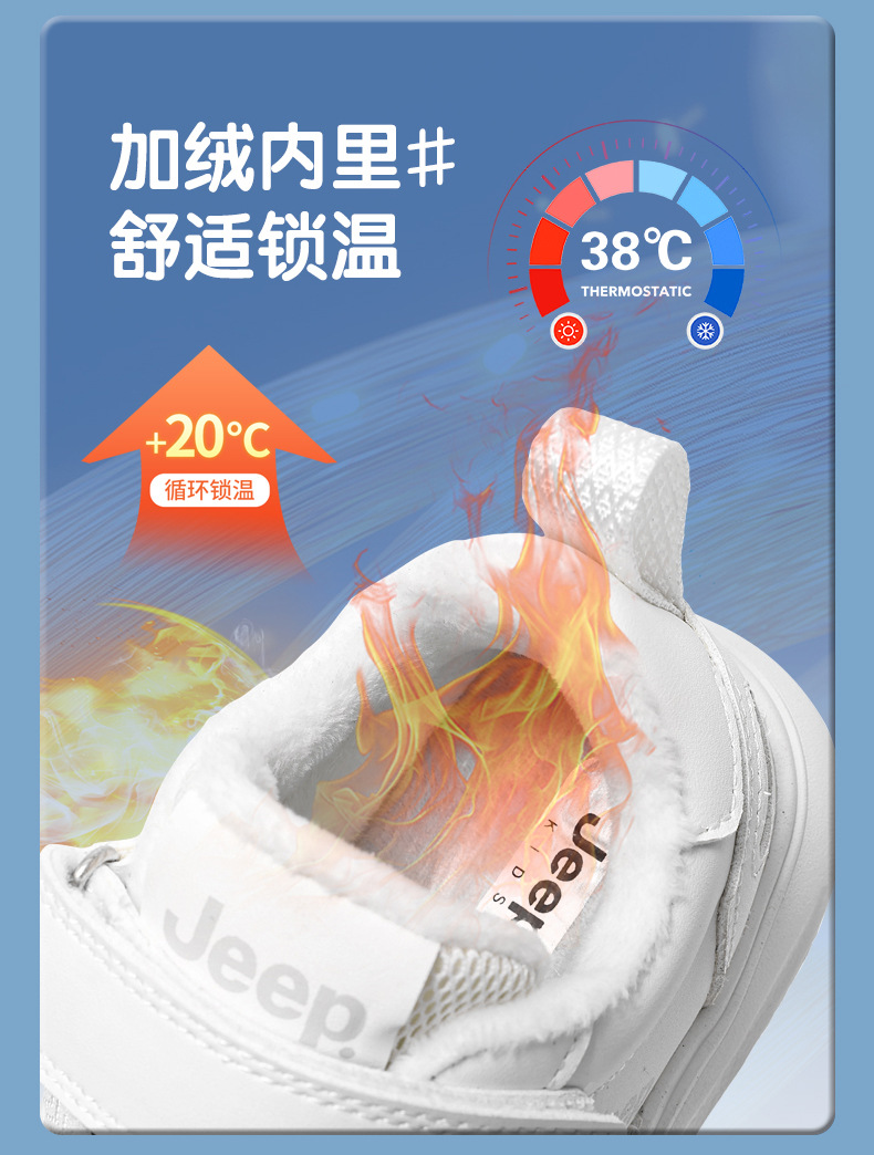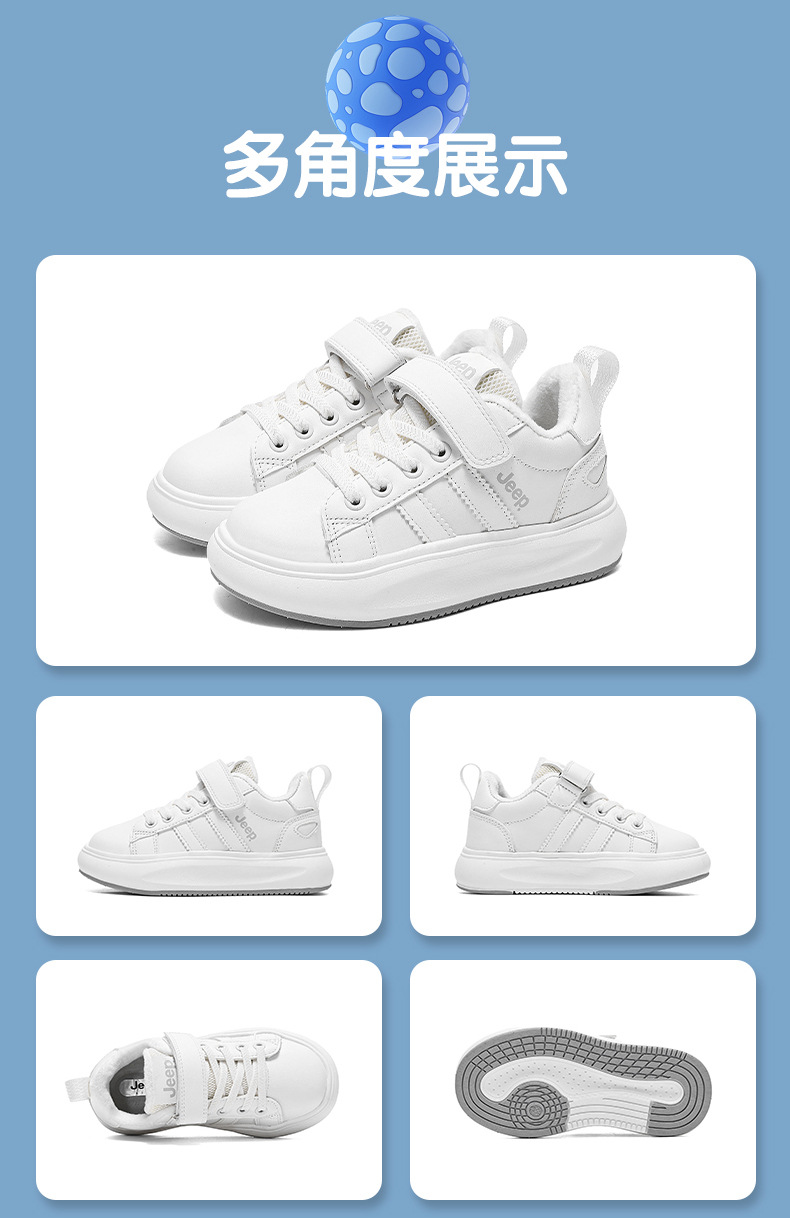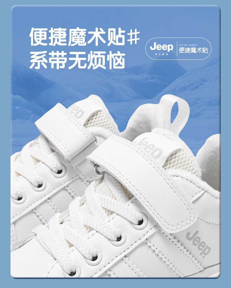 정품 지프 아동화, 보온 기능이 있는 학생용 흰색 운동화, 2025년 신형 가죽 방수 부드러운 밑창 아동 운동화