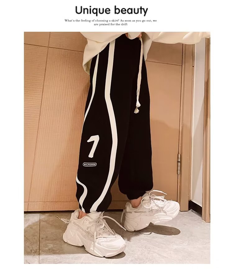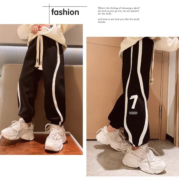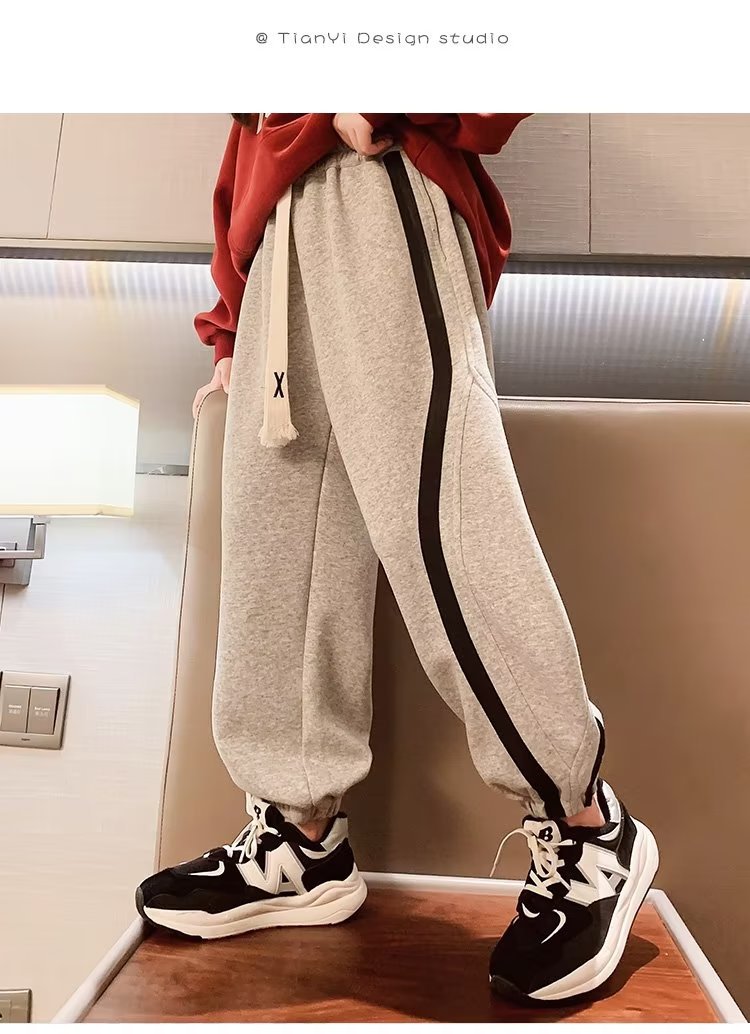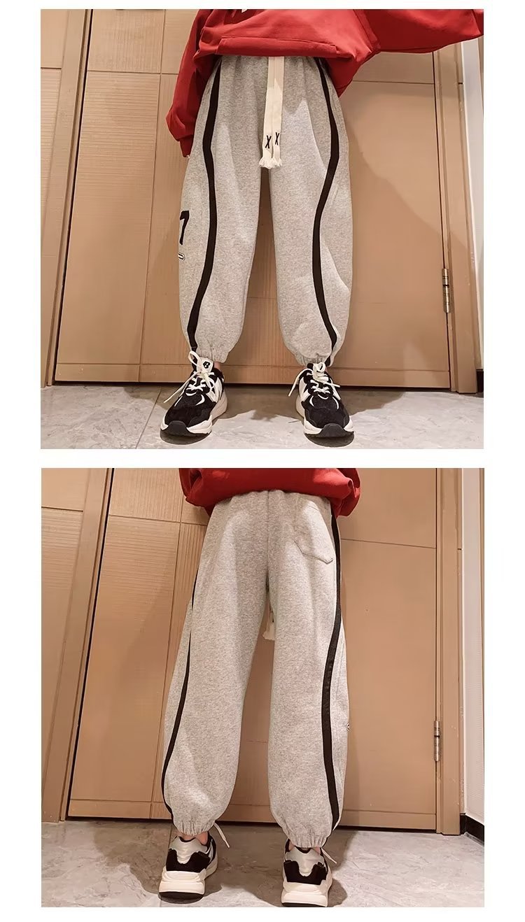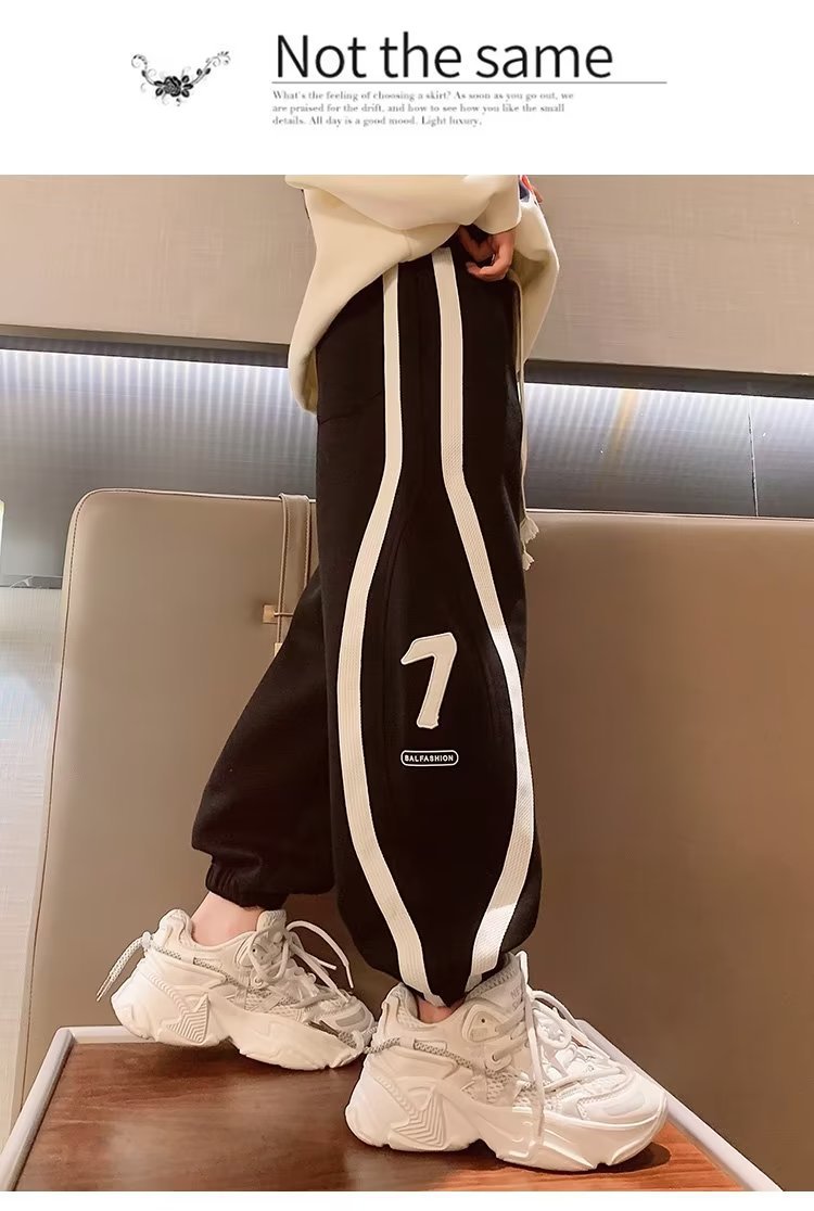 소녀 양털 바지 봄과 가을 2024 새로운 큰 어린이 느슨한 운동복 가을 인터넷 연예인 튀긴 거리 어린이 스포츠 바지스토어 가기