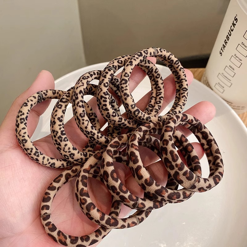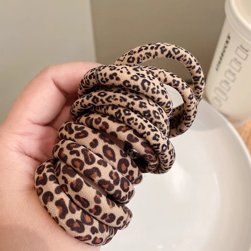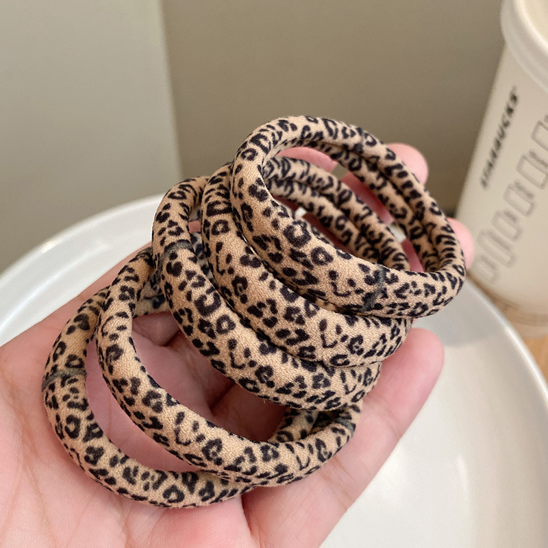 일본과 한국의 가을과 겨울 새로운 높은 탄성 원활한 레오파드 무늬 가죽 Tendon Pontail 헤어 로프 여성용 헤어 링스토어 가기