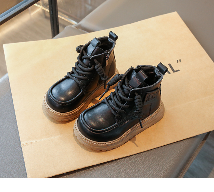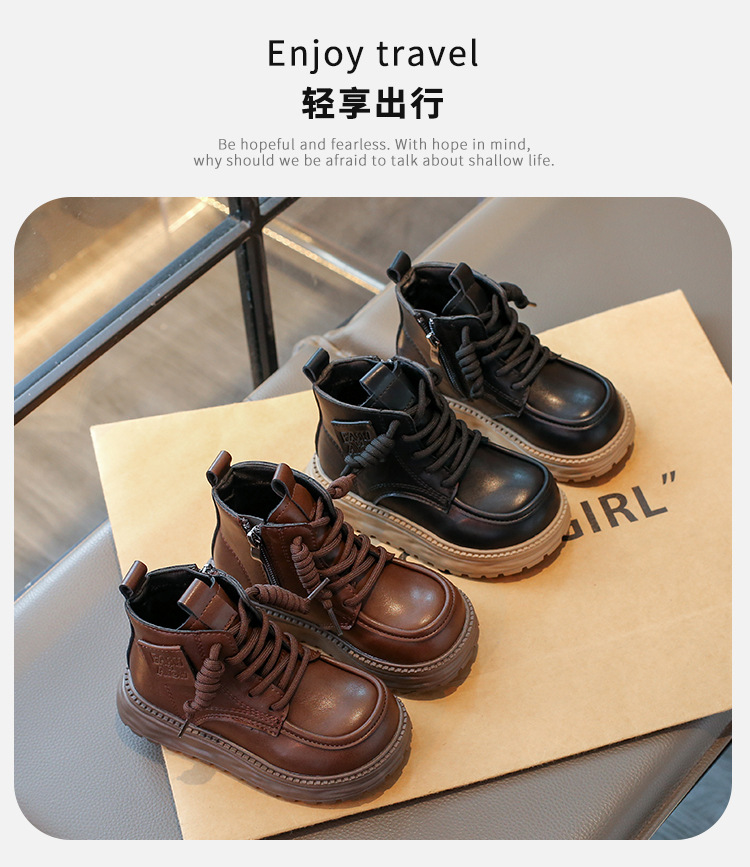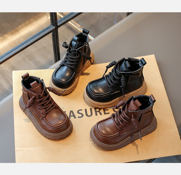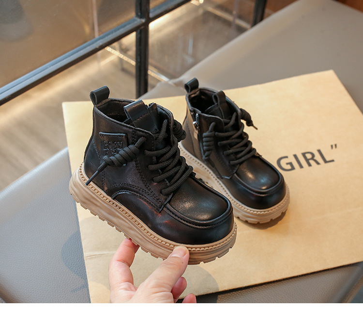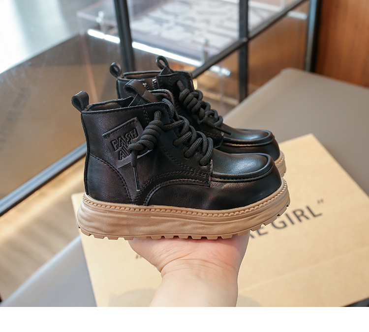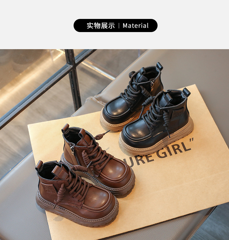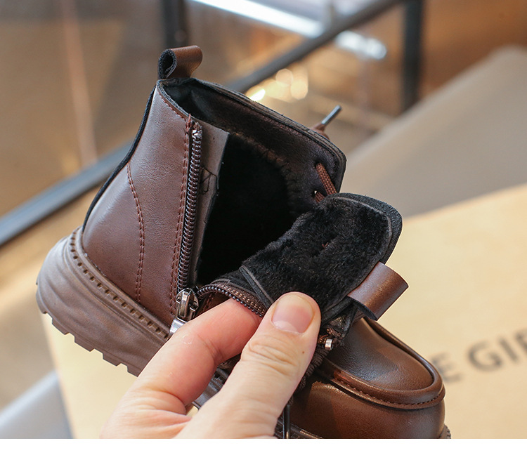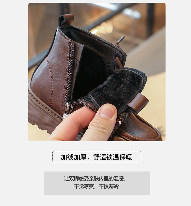 소년 마틴 부츠 2024 가을, 겨울 검은 색 어린이 부츠 진짜 부드러운 가죽 두 번째 면화 중형 및 대형 어린이 플러스 벨벳 소녀 짧은 부츠 미끄럼 방지스토어 가기