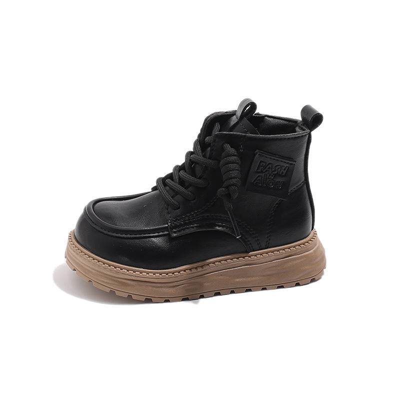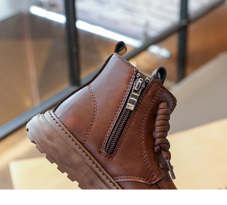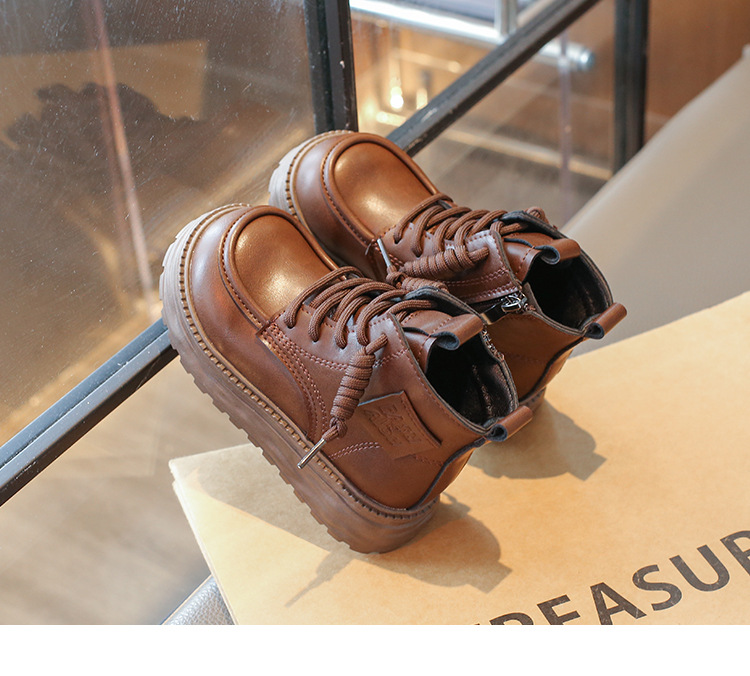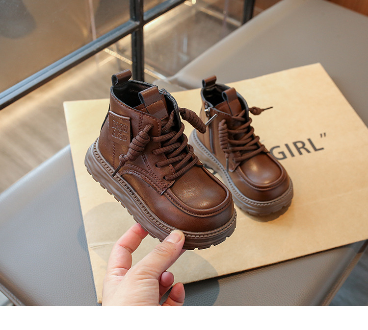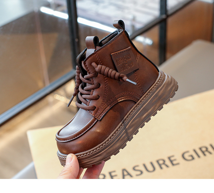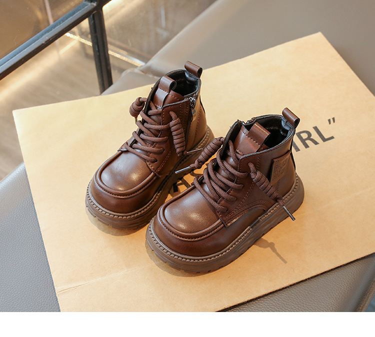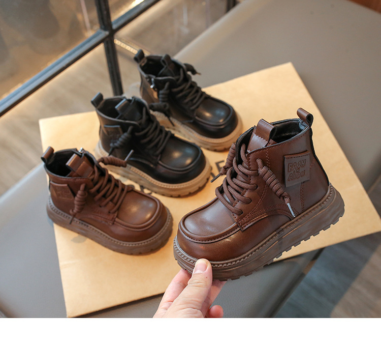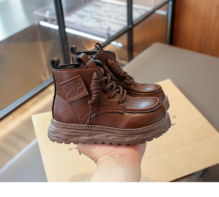 소년 마틴 부츠 2024 가을, 겨울 검은 색 어린이 부츠 진짜 부드러운 가죽 두 번째 면화 중형 및 대형 어린이 플러스 벨벳 소녀 짧은 부츠 미끄럼 방지스토어 가기