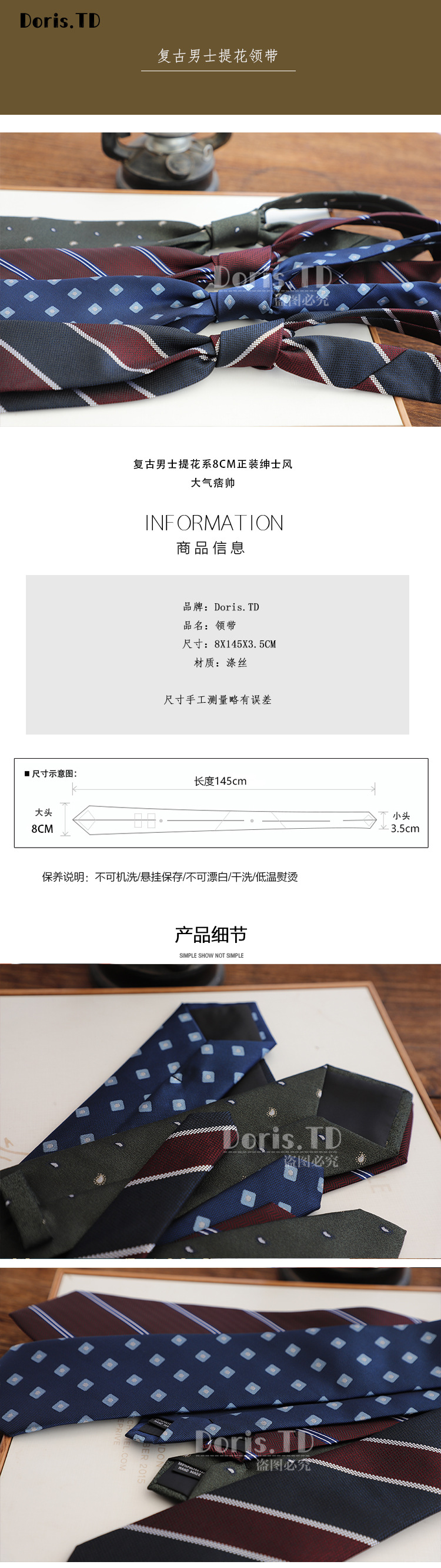 공장 재고 도매 빈티지 신사 스타일 프랑스 8CM 남성 넥타이 다크 그린 커피 버건디 줄무늬 전문가스토어 가기
