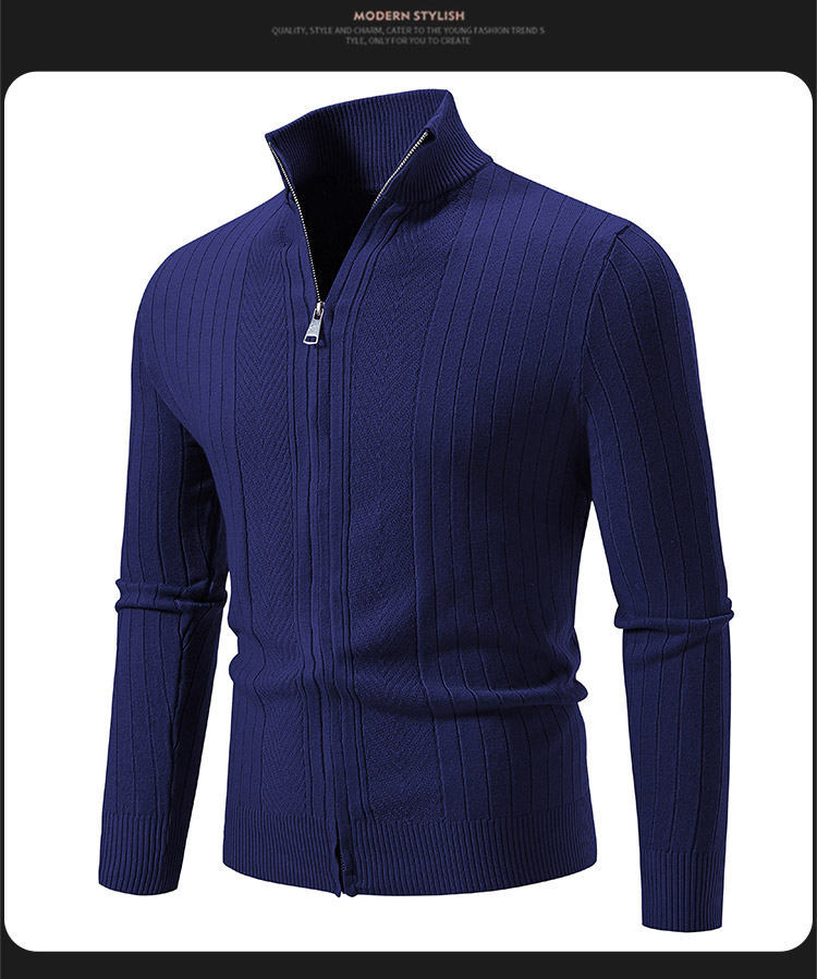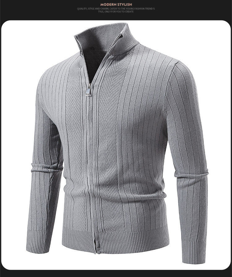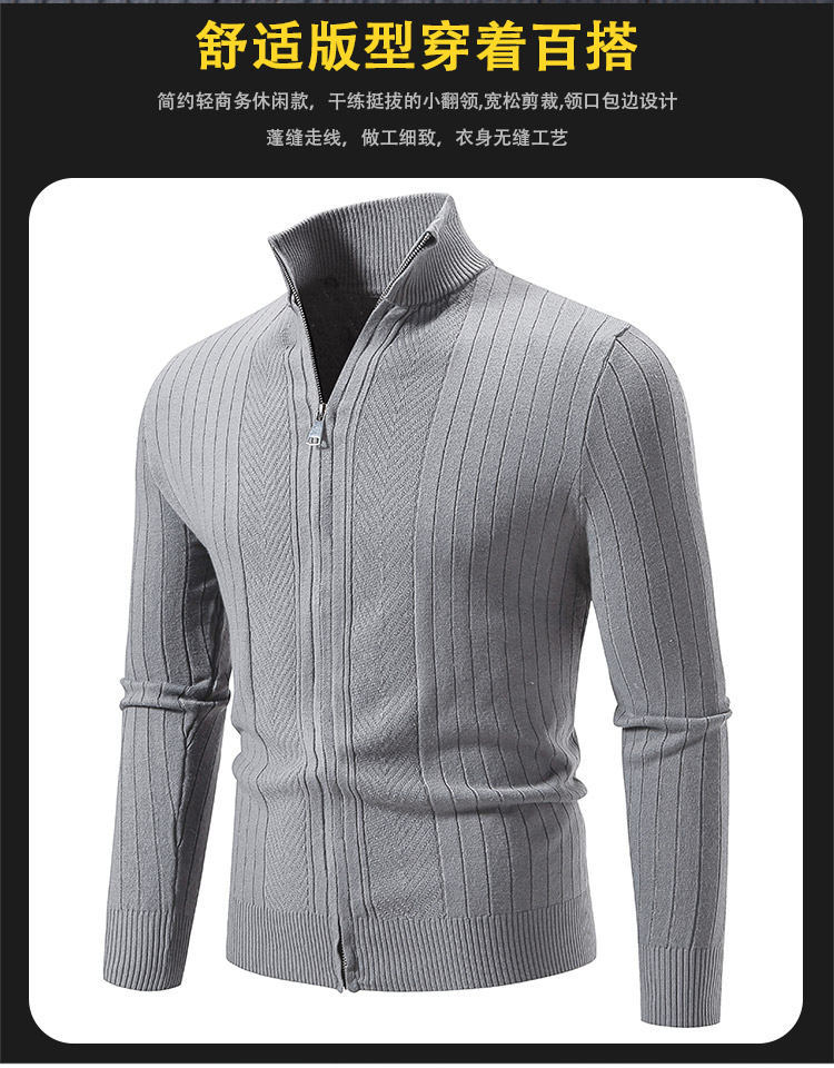 남자 스웨터 니트 카디건 국경 아마존 가을과 겨울 청소년 줄무늬 지퍼 스웨터 카디건 코트 재고스토어 가기