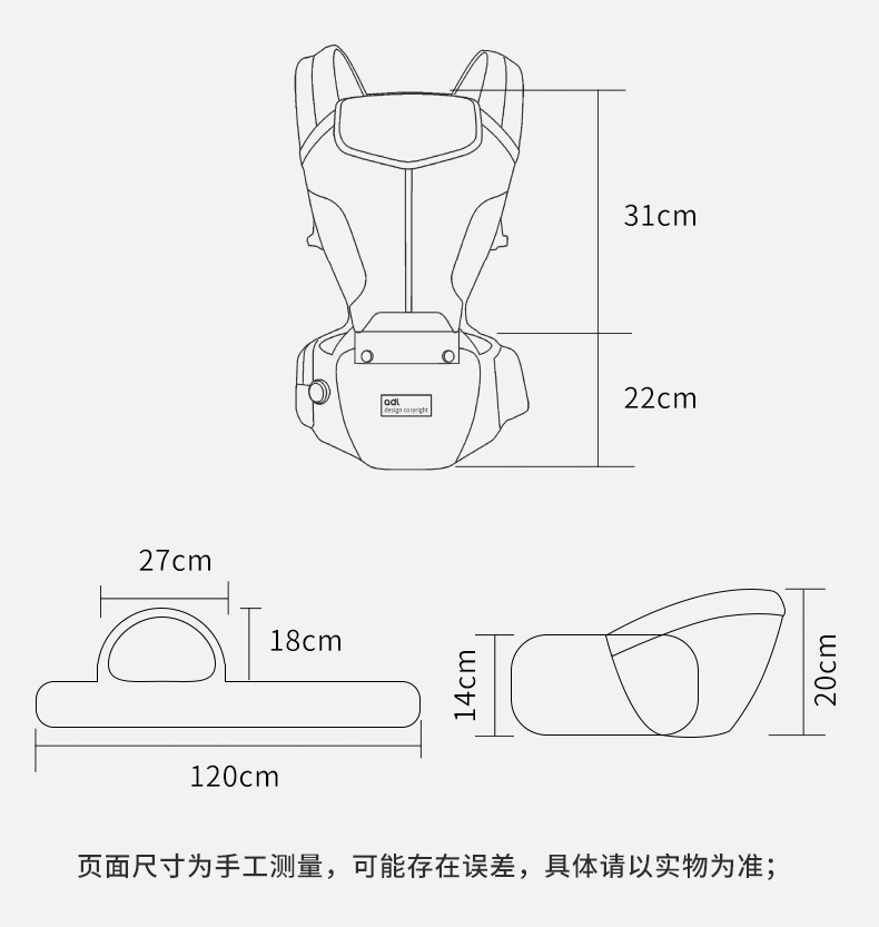 Andi Lan 아기 허리 의자 끈 아기 다기능 포옹 앉는 의자 가벼운 포옹 사계절 이중 사용 포옹 아기 아티팩트스토어 가기