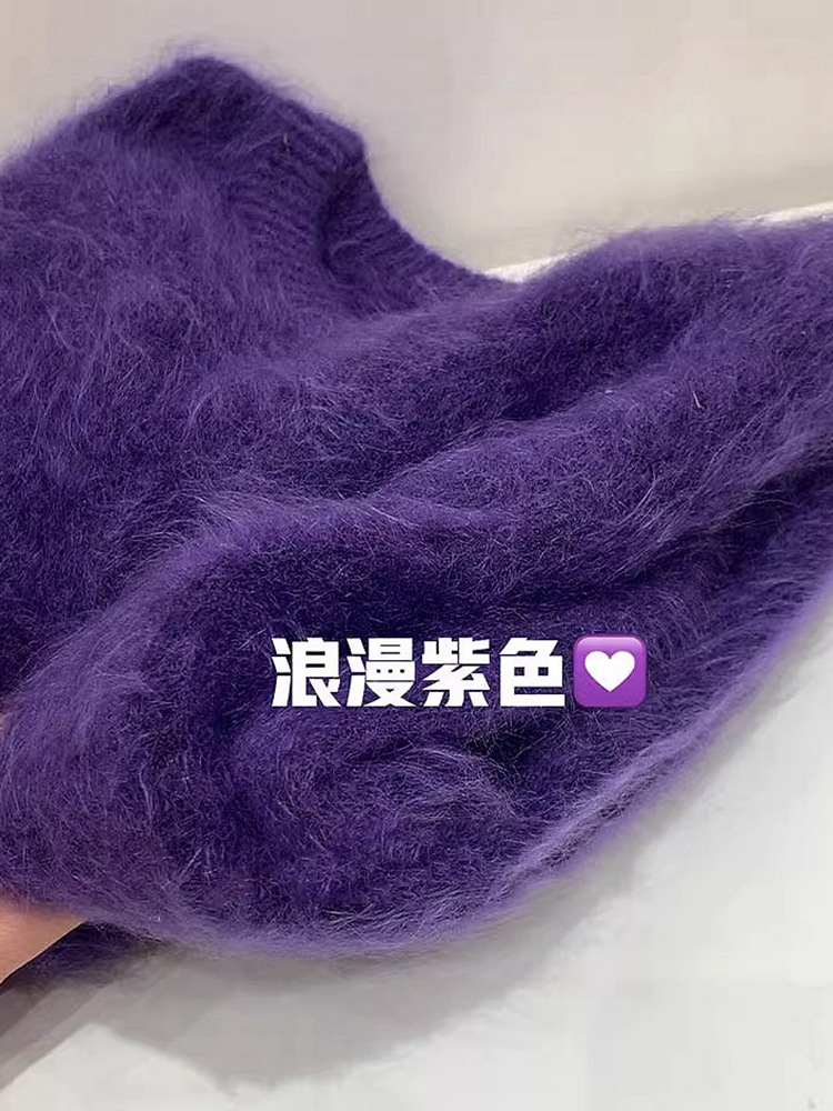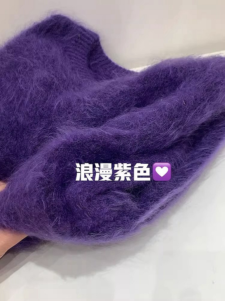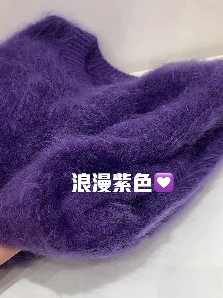 2024秋款高级慵懒风软糯仿水貂绒紫色马海毛加厚套头毛衣针织衫女