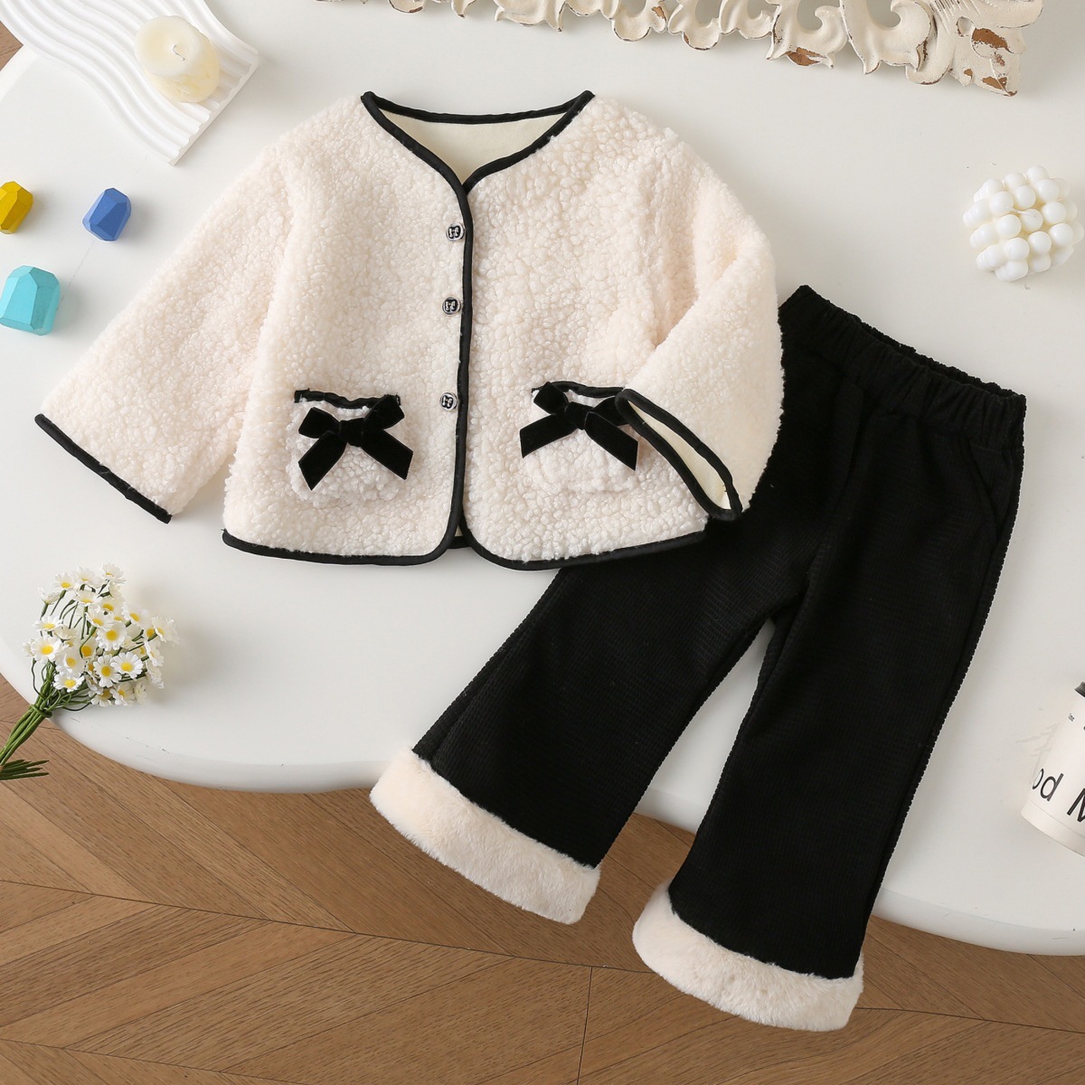 소녀 코트 두꺼운 양털 우아한 어린이 활 2024 어린이 겨울 긴 소매 캐시미어 아기스토어 가기