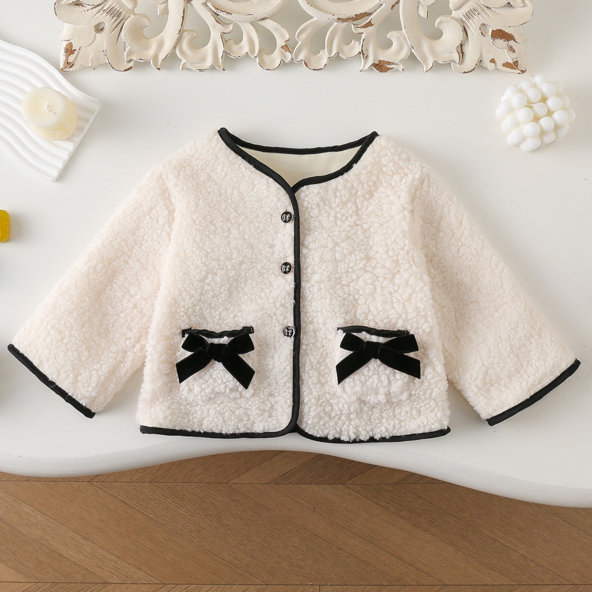 소녀 코트 두꺼운 양털 우아한 어린이 활 2024 어린이 겨울 긴 소매 캐시미어 아기