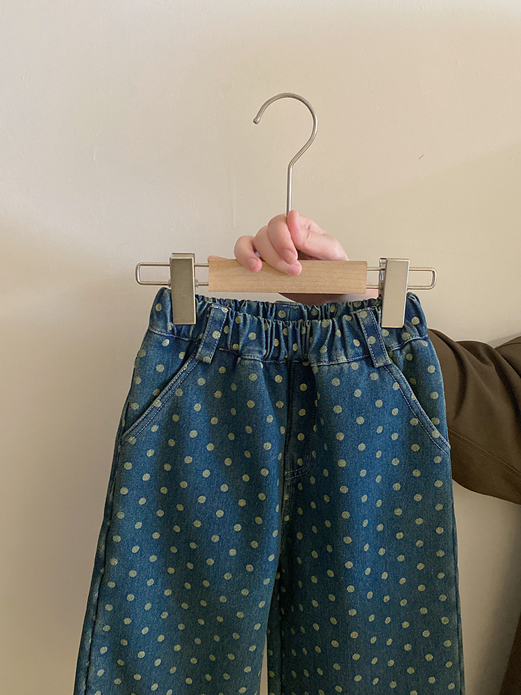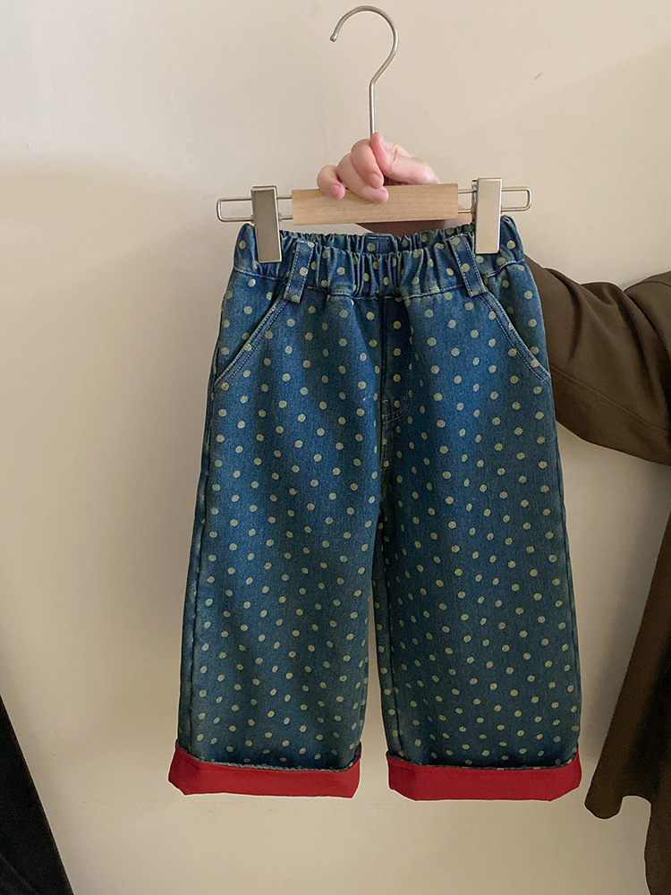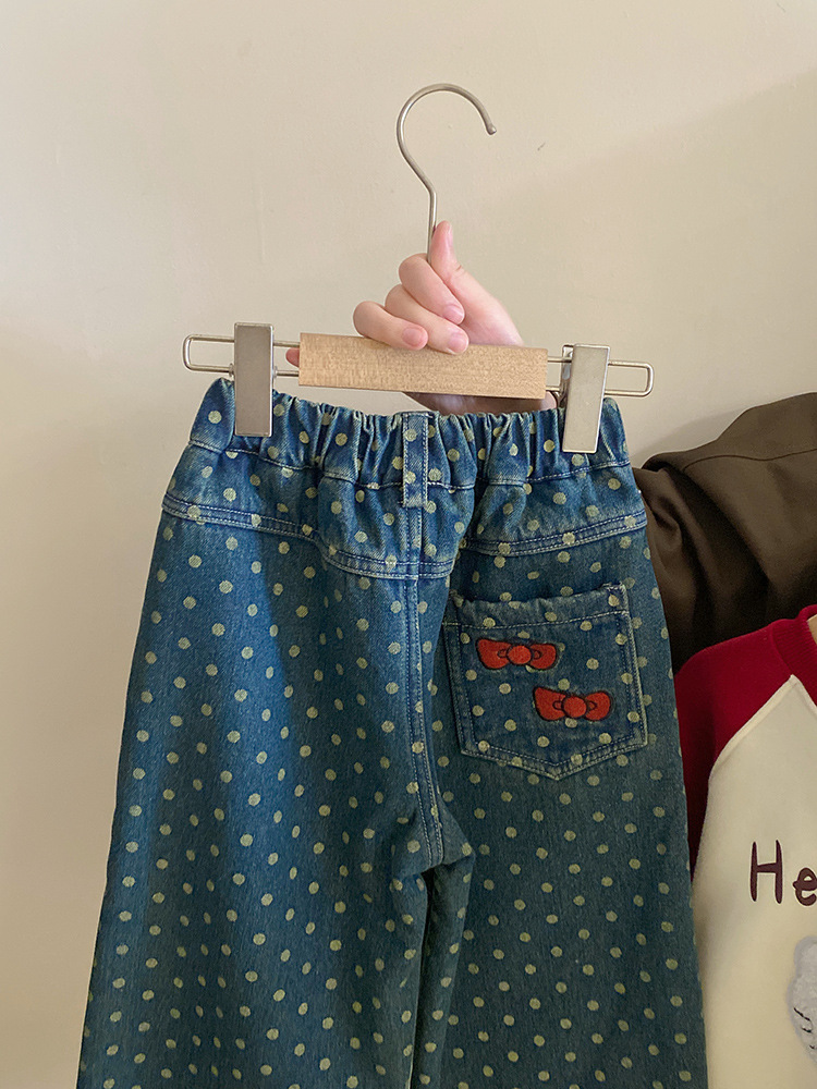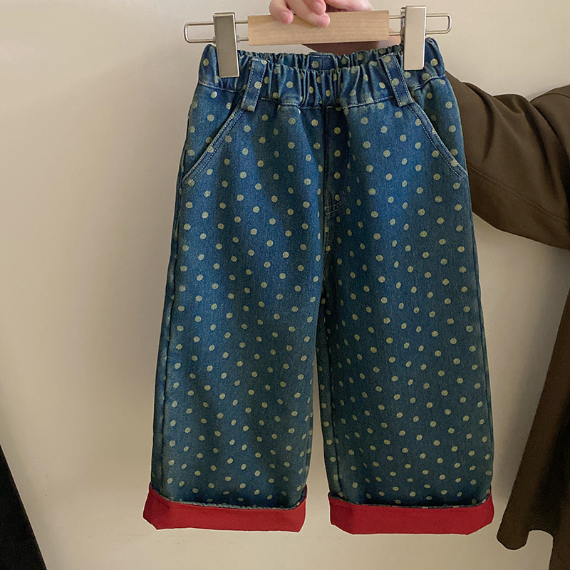 여자 한국 귀여운 KT 고양이 컬러 매칭 기모 스웨터 2024 가을과 겨울 뉴 웨이브 도트 기모 청바지 세트 조수