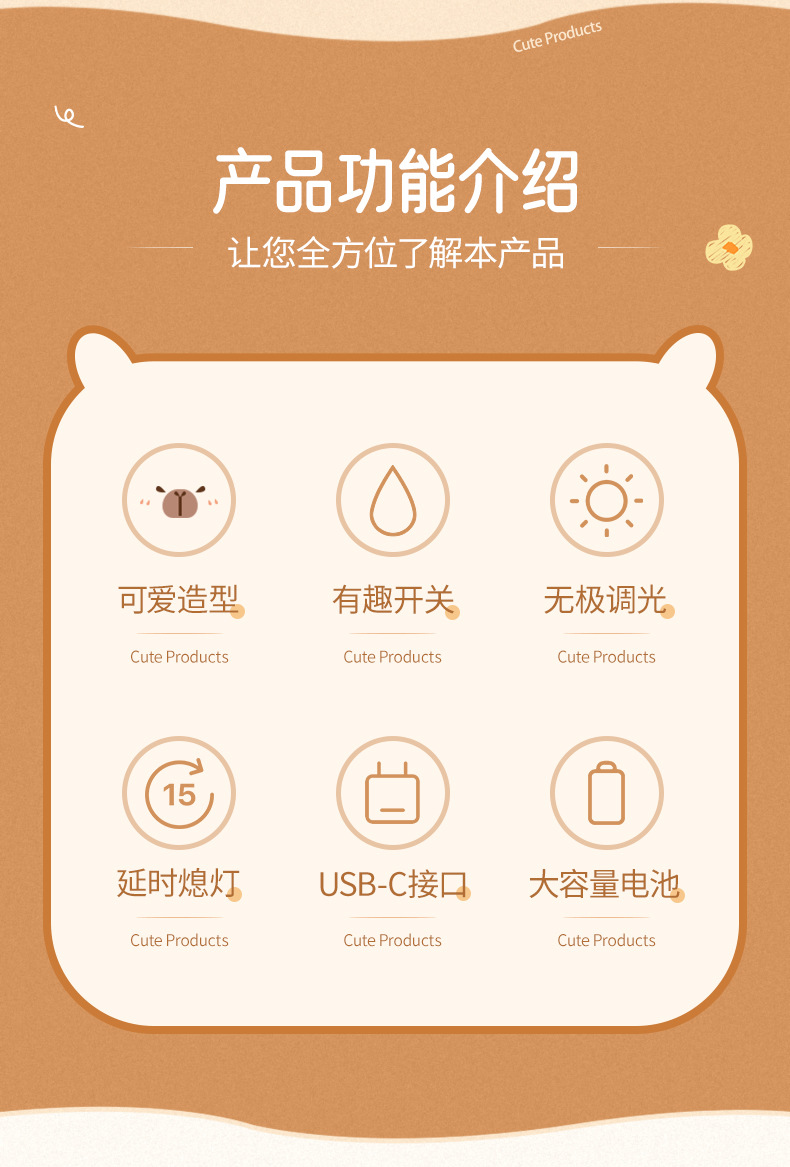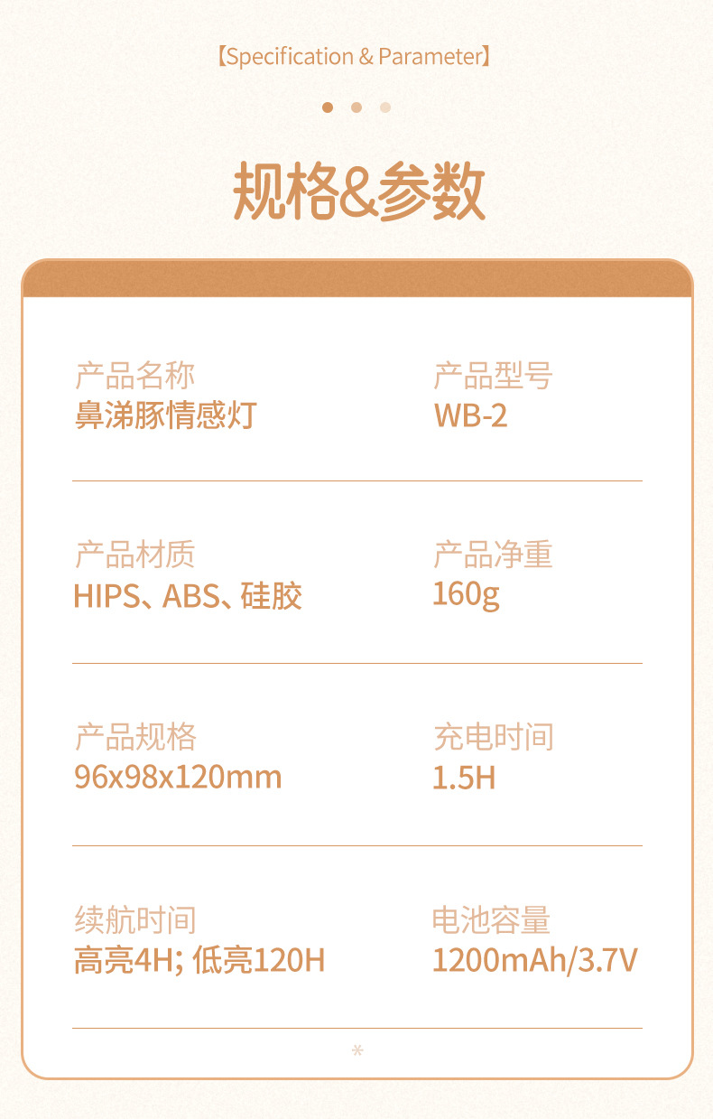 灯光功率: 2W;Type-C