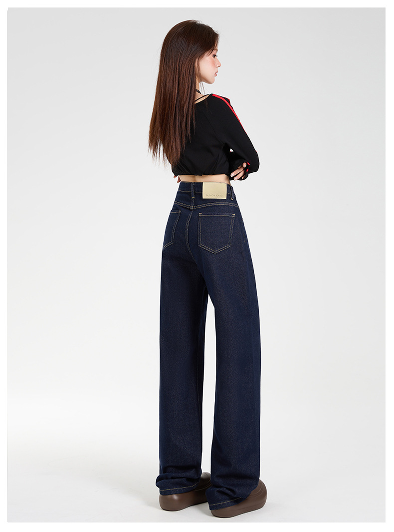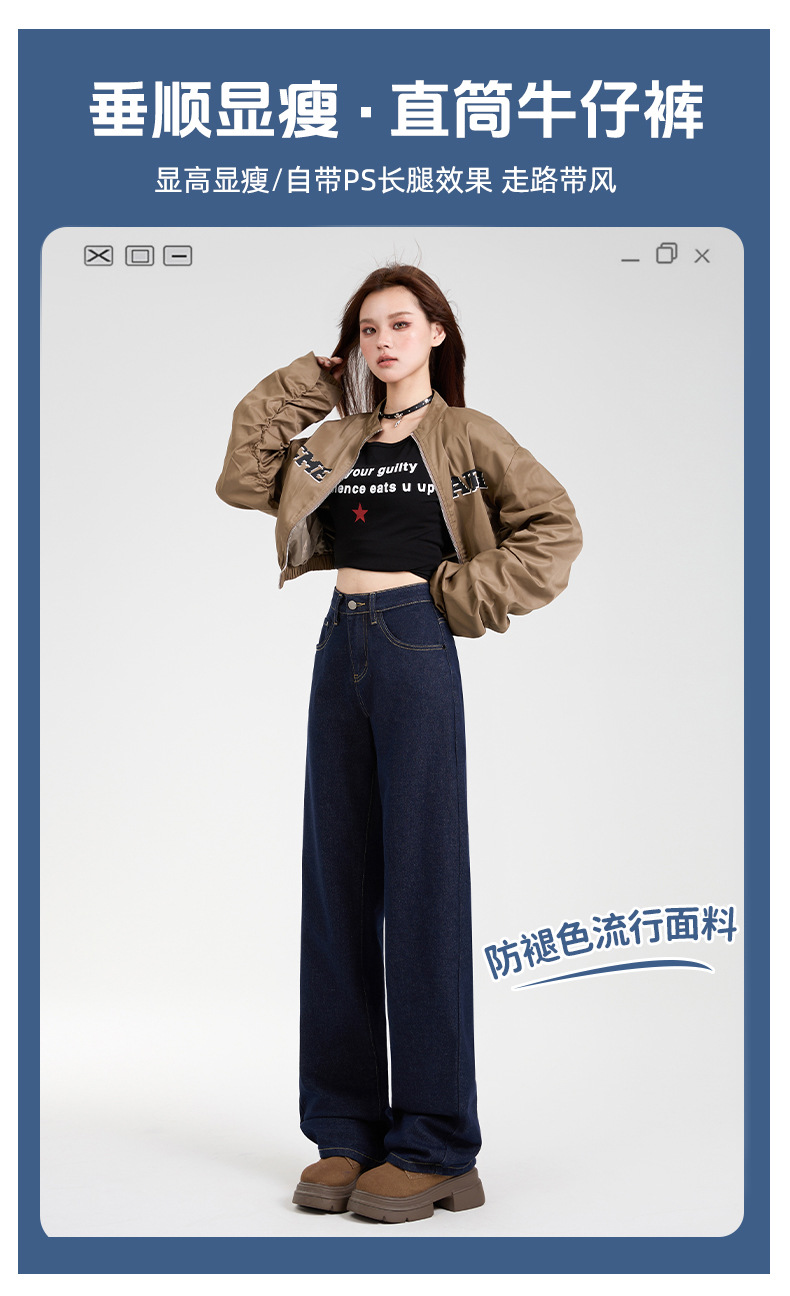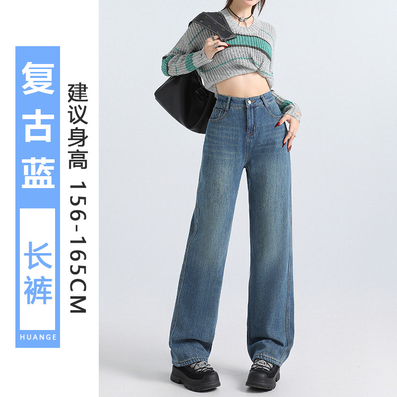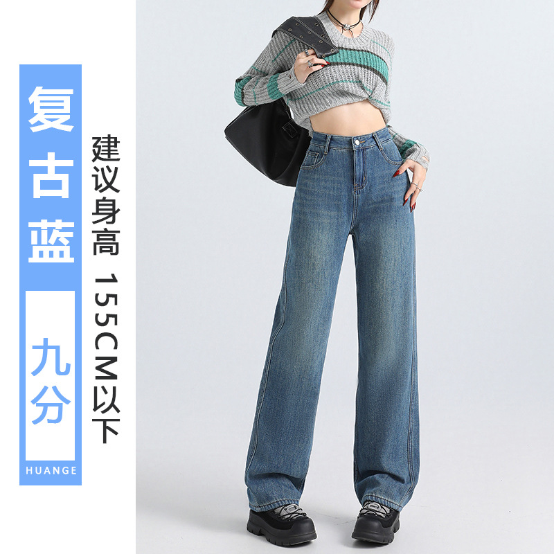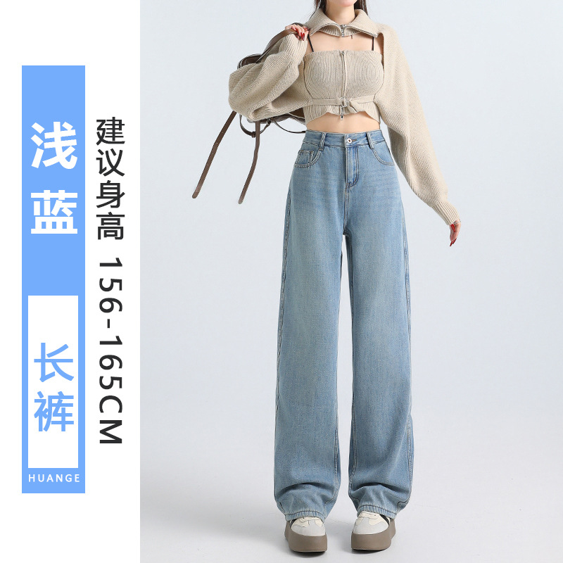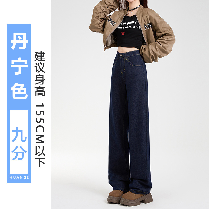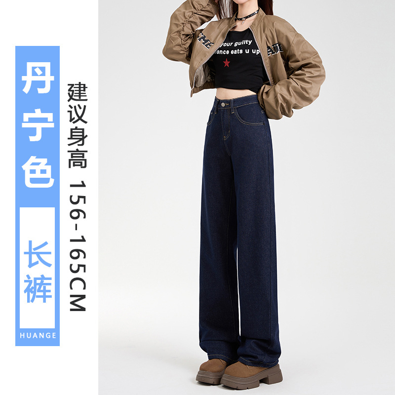 데님 블루 슬림핏 와이드 팬츠 기모 데님 여성용 가을 겨울 2025 신상 하이웨이스트 슬림 루즈핏 스트레이트 팬츠스토어 가기