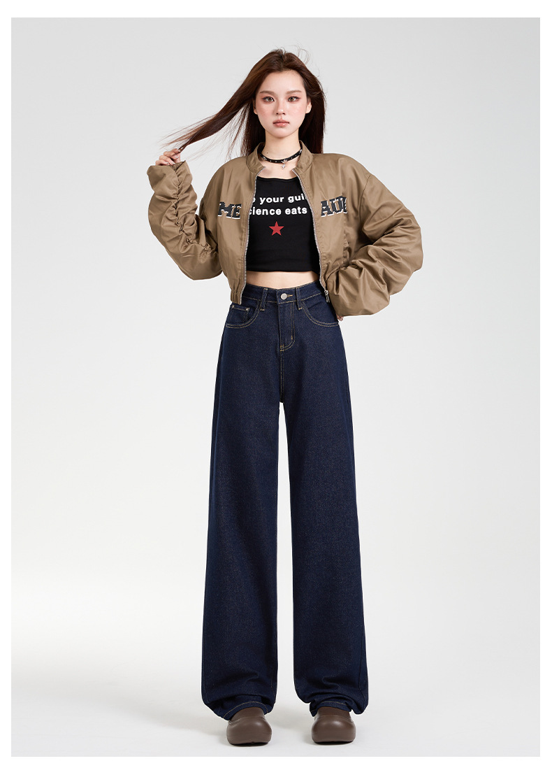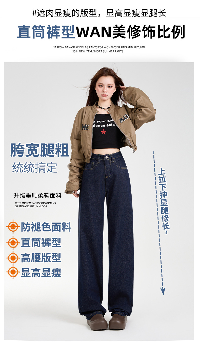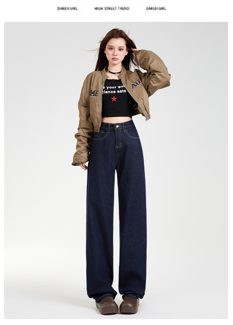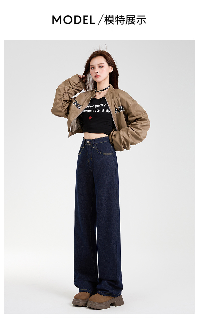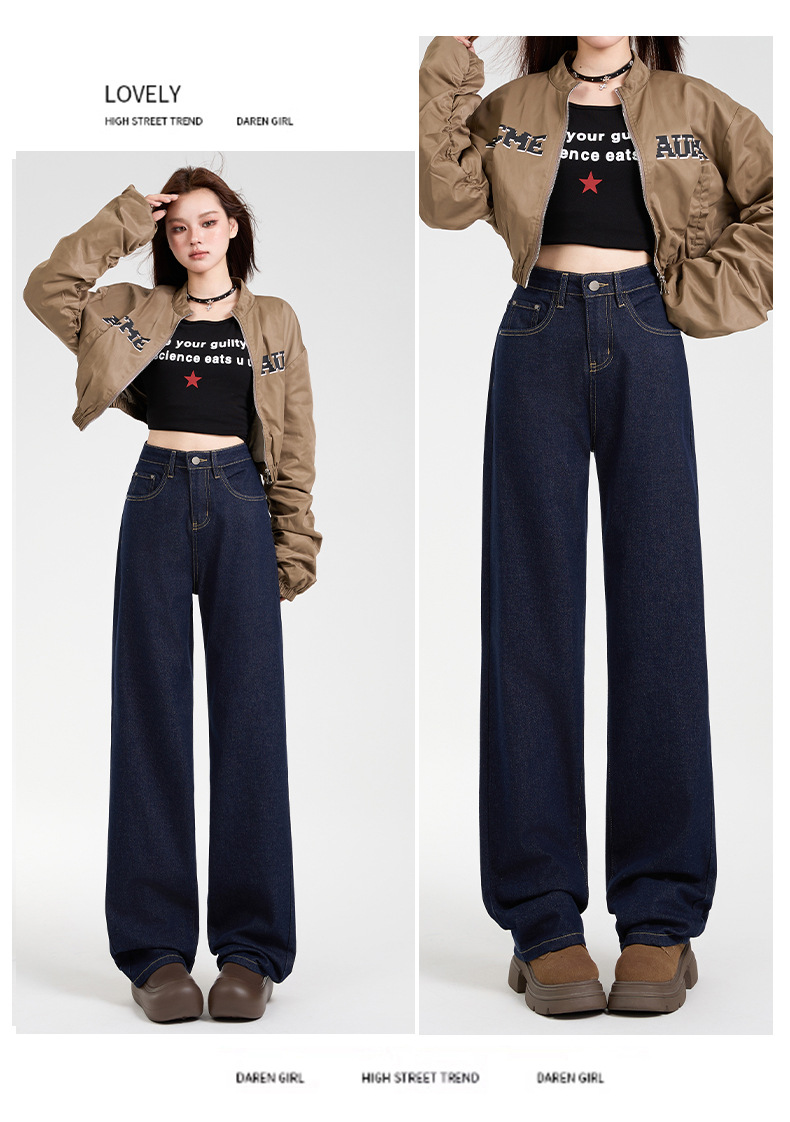 데님 블루 슬림핏 와이드 팬츠 기모 데님 여성용 가을 겨울 2025 신상 하이웨이스트 슬림 루즈핏 스트레이트 팬츠스토어 가기